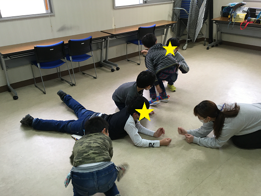 交流タイムでは、いつも公園に遊びに行くのですが、今日は教室でみんなでゲームをしました♪