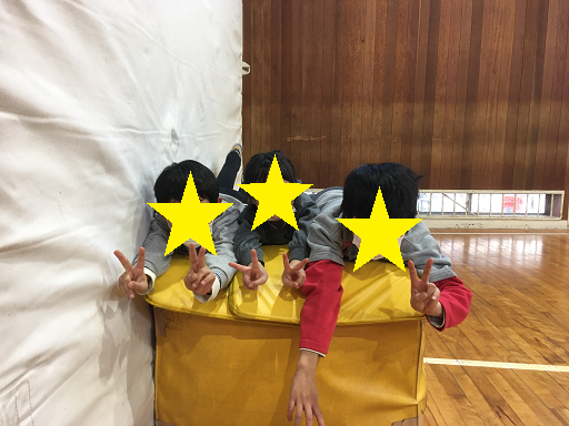 ボンドが乾くまでの間、体育館で遊びました。