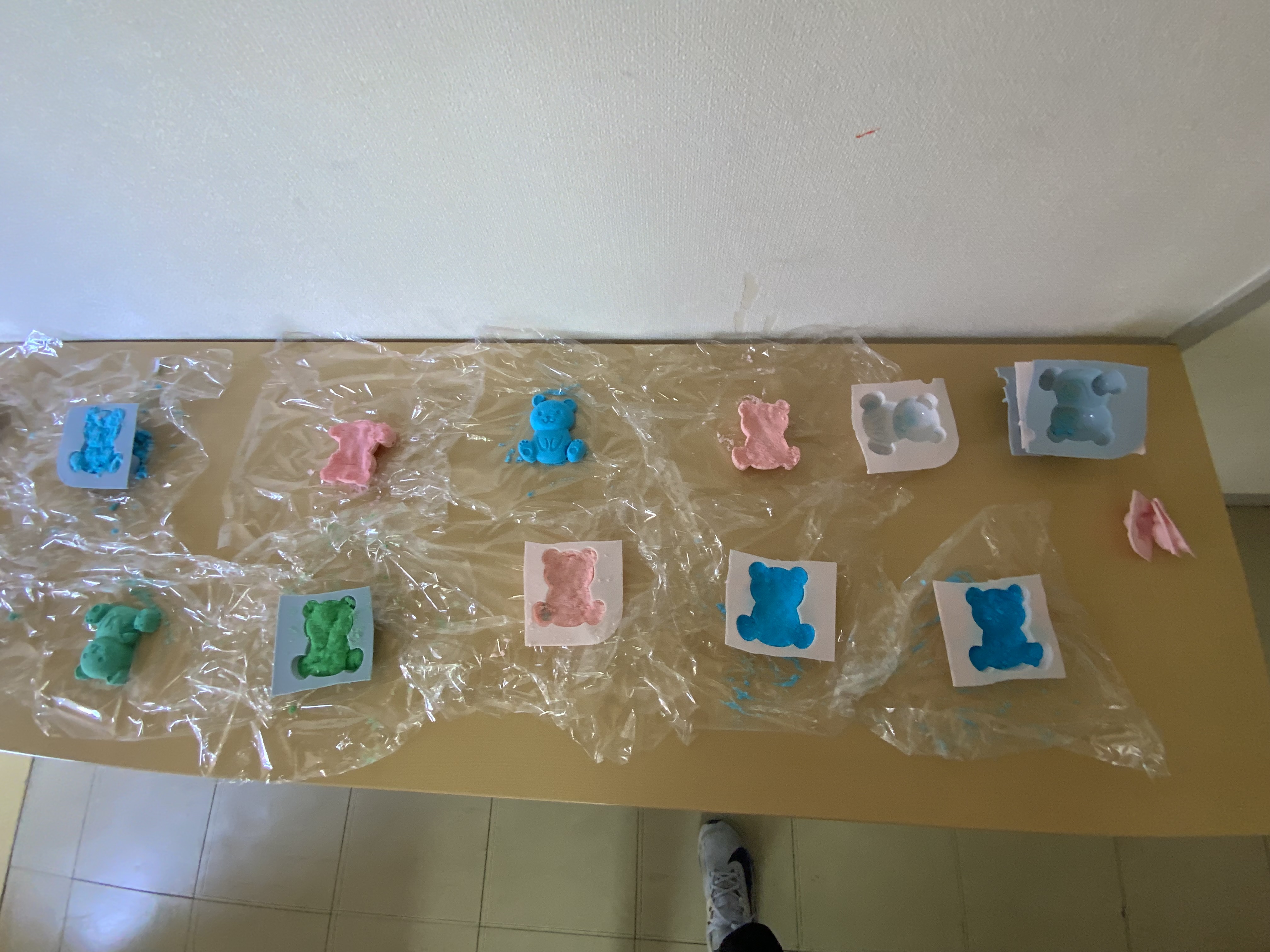 《2日目》「バスボム作り」です。好きな色に仕上げ、エッセンシャルオイルも、実際匂って決めて加え、