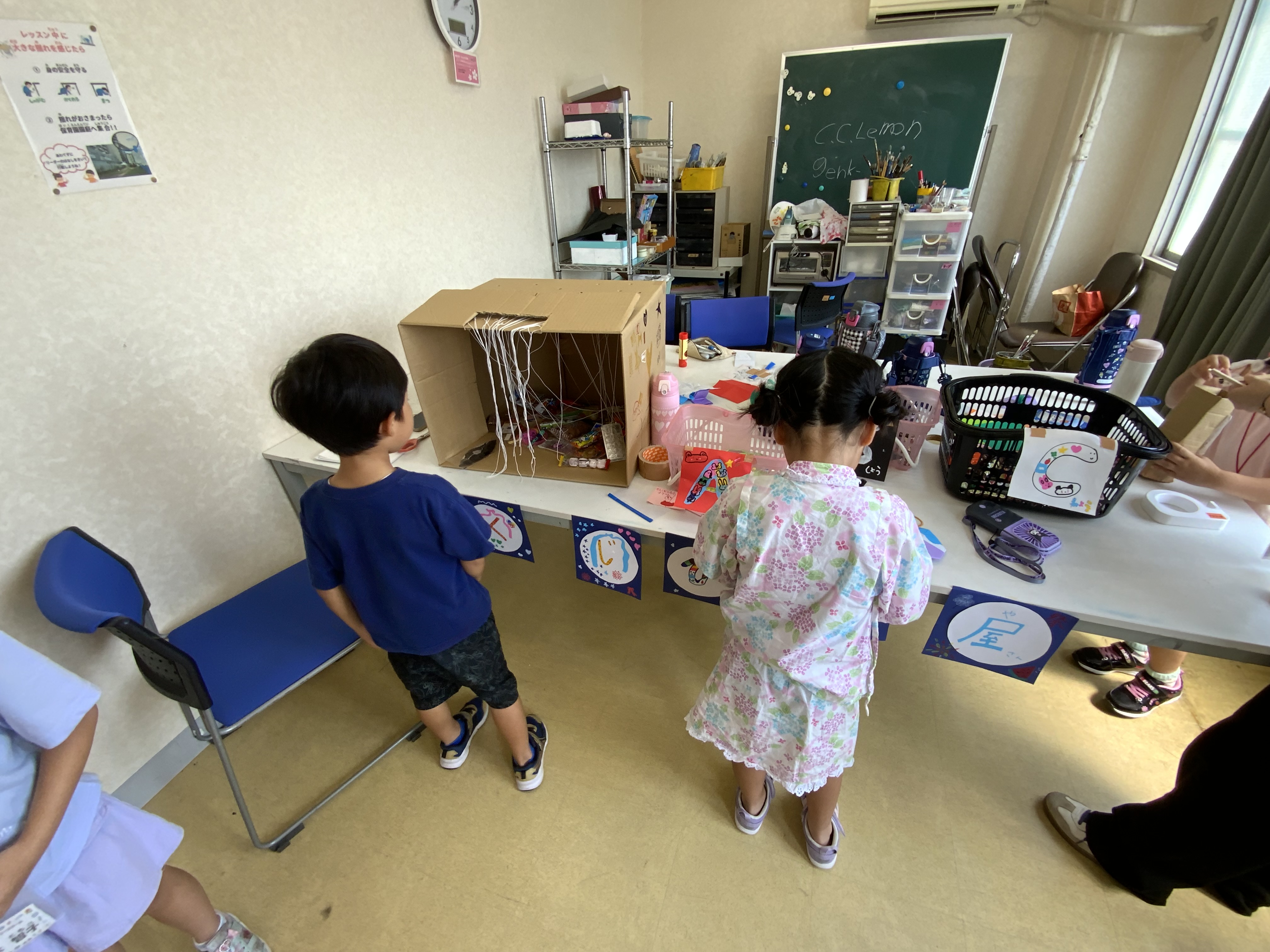 後半は、4日目のお祭りの準備時間を充てました。説明すると想像が膨らみ、作業がはかどっていました。