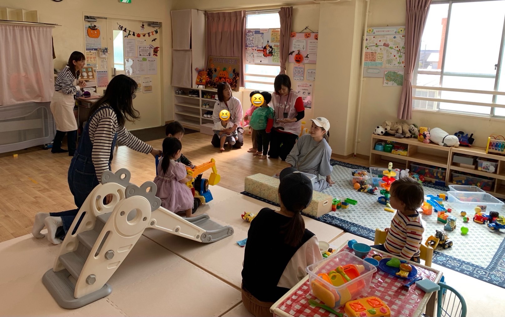 また、28日と29日には、YMCA西大寺南保育園のお友だちが自分で作ったお化けちゃんに変装したり、消防士やお巡りさんの衣装を着て遊びに来てくれました。保育園に帰る時にお友だちや先生と一緒に、声をそろえて魔法の言葉「トリック・オア・トリート!」とても可愛らしく、お土産をもらって喜んでいました。