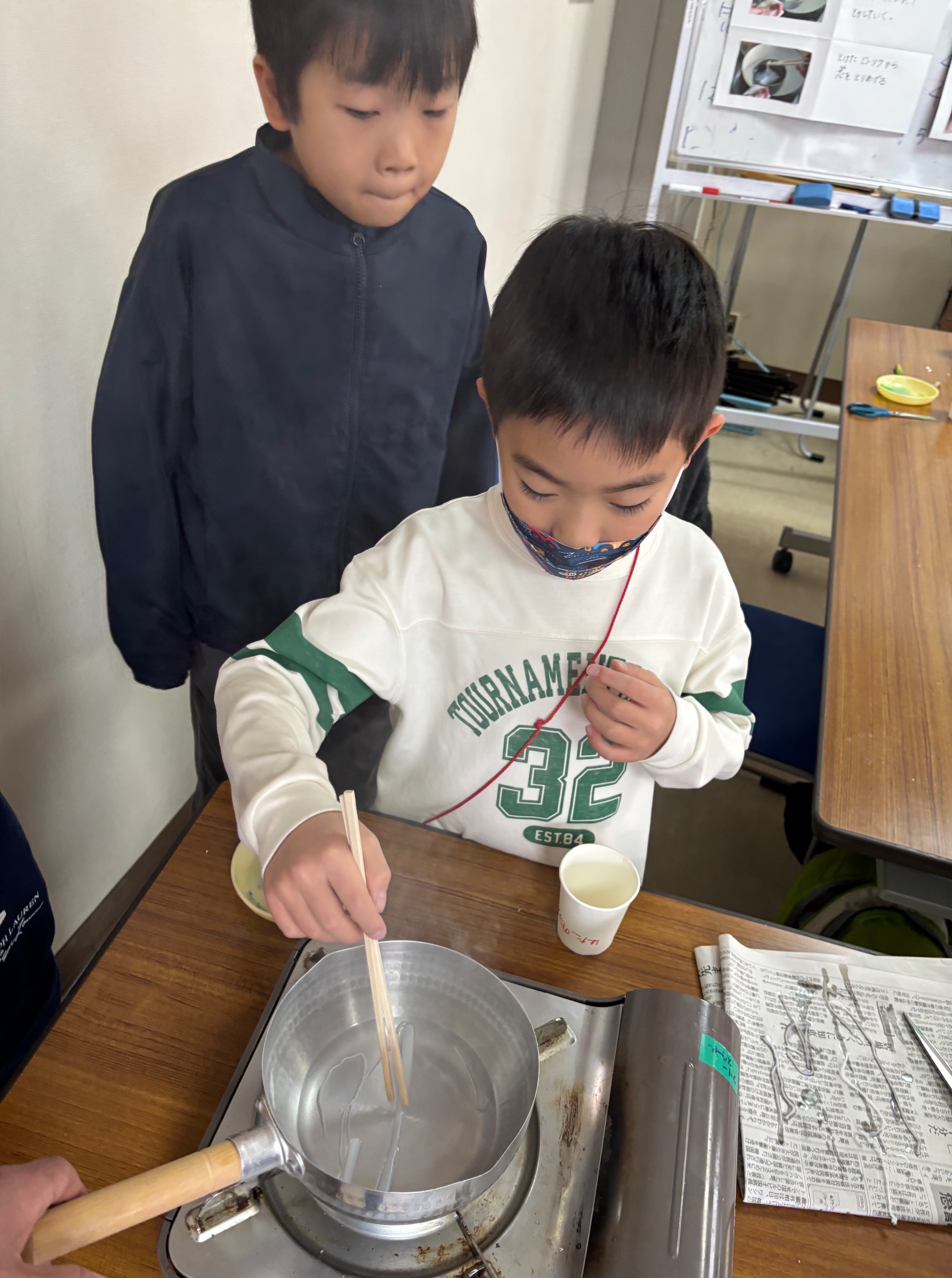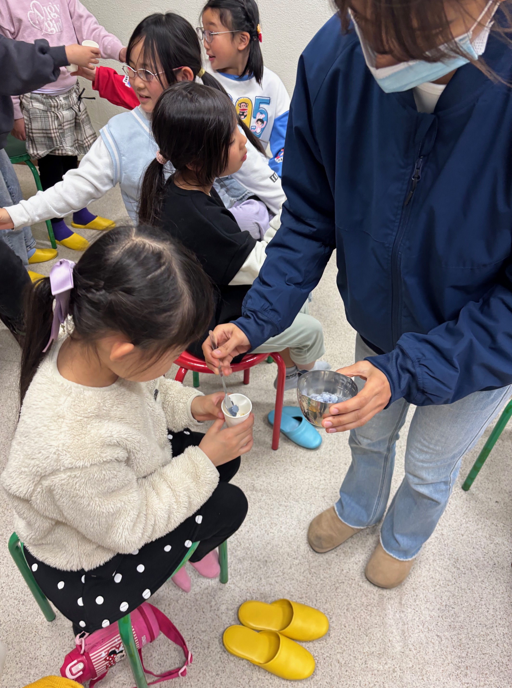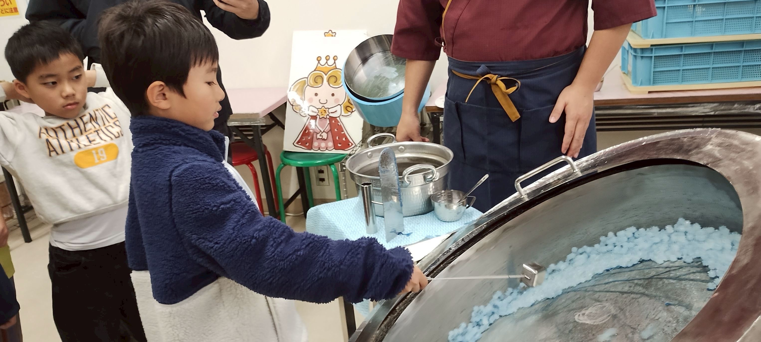 2班体制で、始めに金平糖作りの体験をするグループと、色んな味の金平糖を試食するグループとで交代しました。
