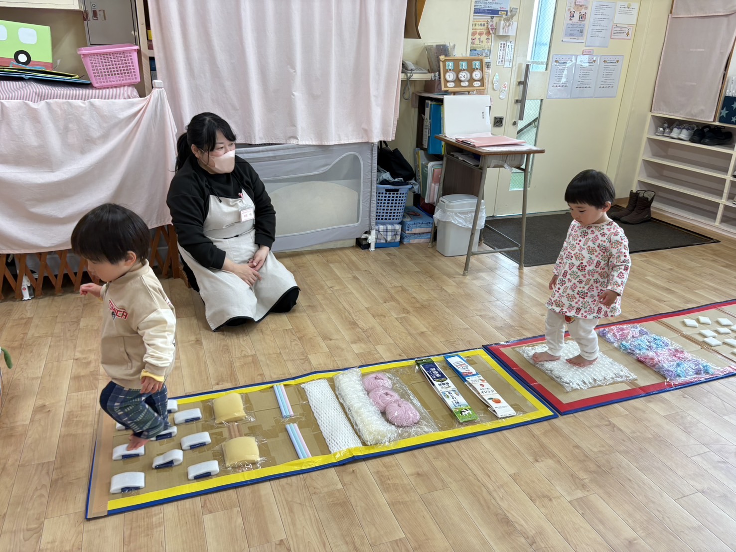 「エプロンシアター」お 弁当バスを見ました。次から次へとお弁当の仲間が出てきて、皆さんエプロンのバスに釘付けでした。 その後参加したお子様にお弁当の仲間たちが 1人ずつ配られ、エプロンのバスにぺったん!どんどん仲間たちが増えてきて喜んでいました。