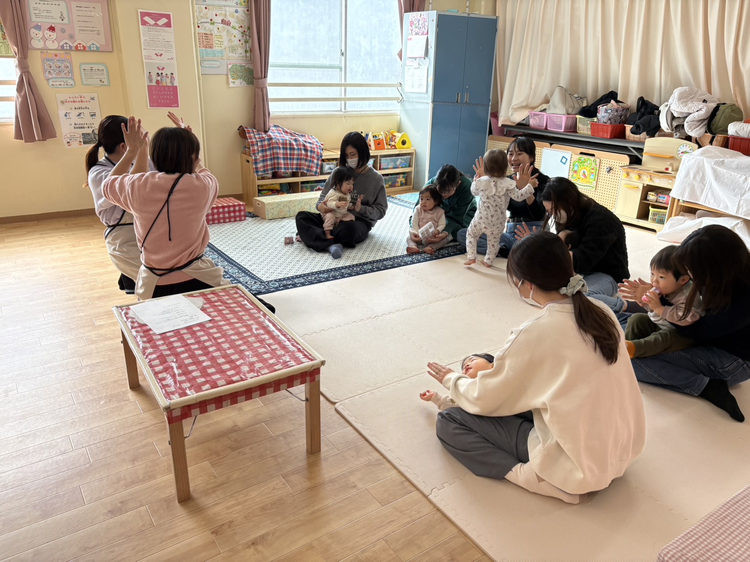 2月18日(水)エンジェルにて3か月~11か月のお子様とその保護者向けの触れ合い遊びの講座を実施しました。