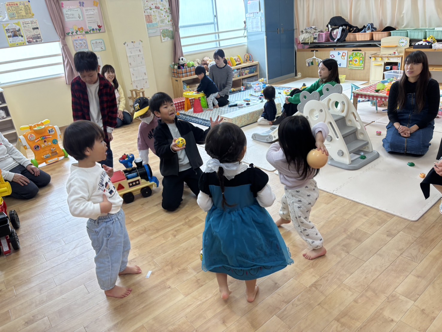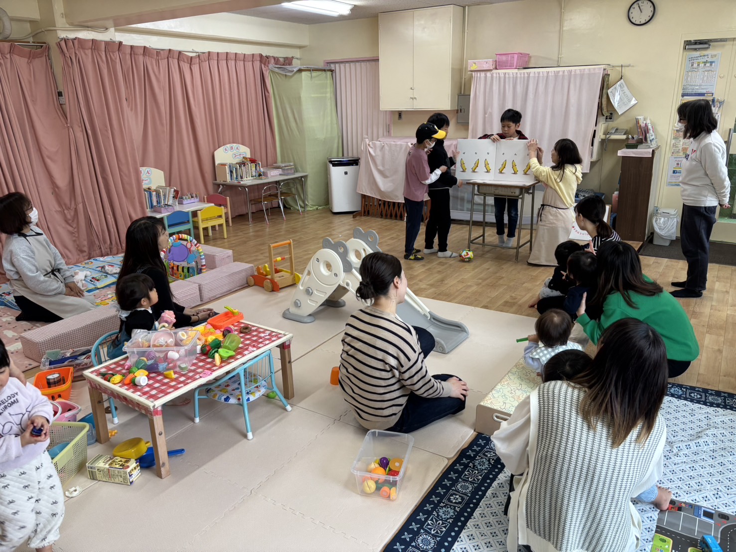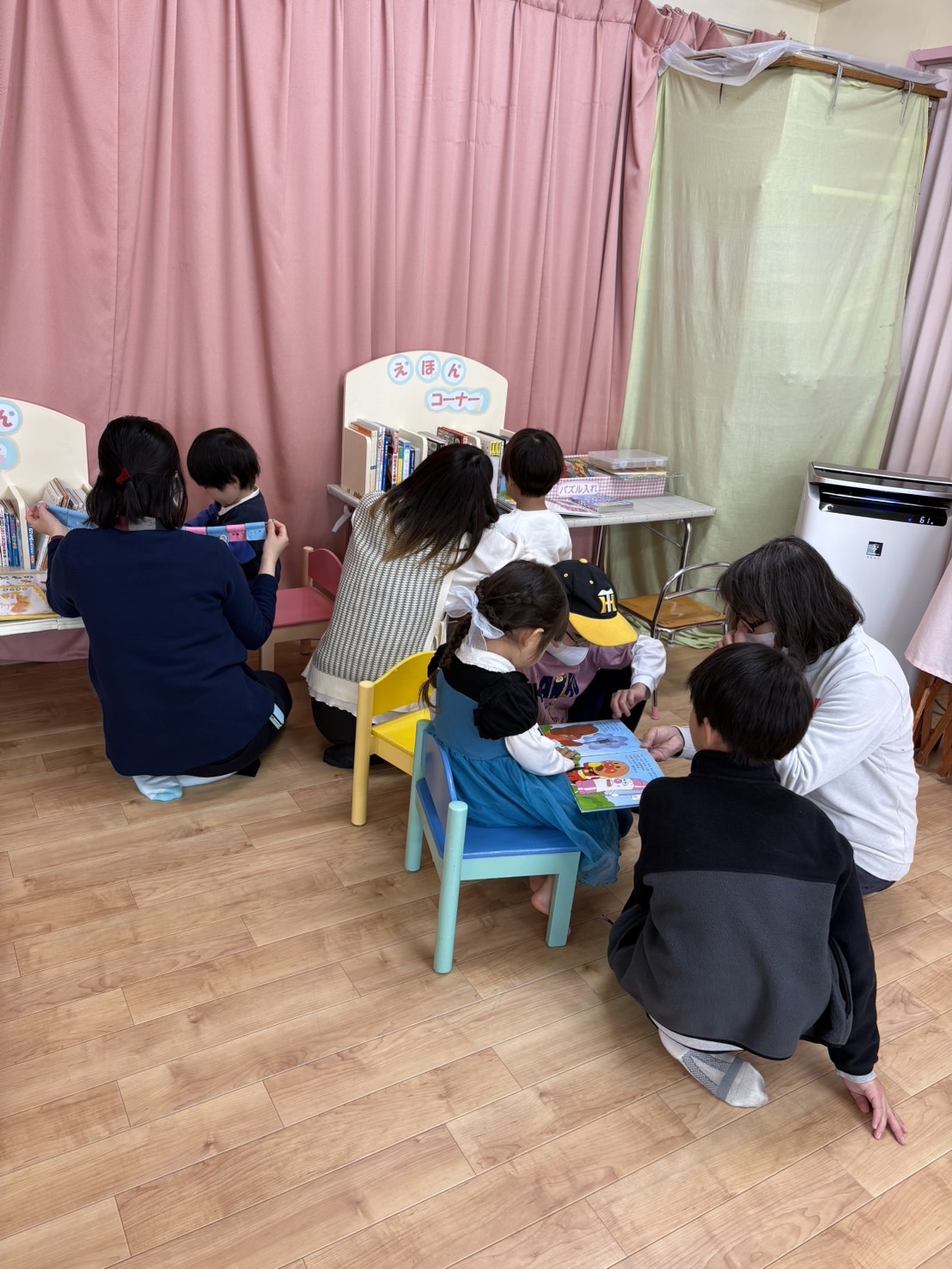 最初はドキドキ緊張気味な様子も見えましたが、大型絵本を読んでくれたり、おもちゃなどで一緒に遊んでくれたりと、有意義な時間を過ごすことができました。