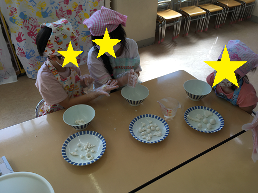 いろんな形のお団子を作って楽しみ、団子をゆでるのも「やりたい!!」とリーダーと一緒に挑戦しました!!