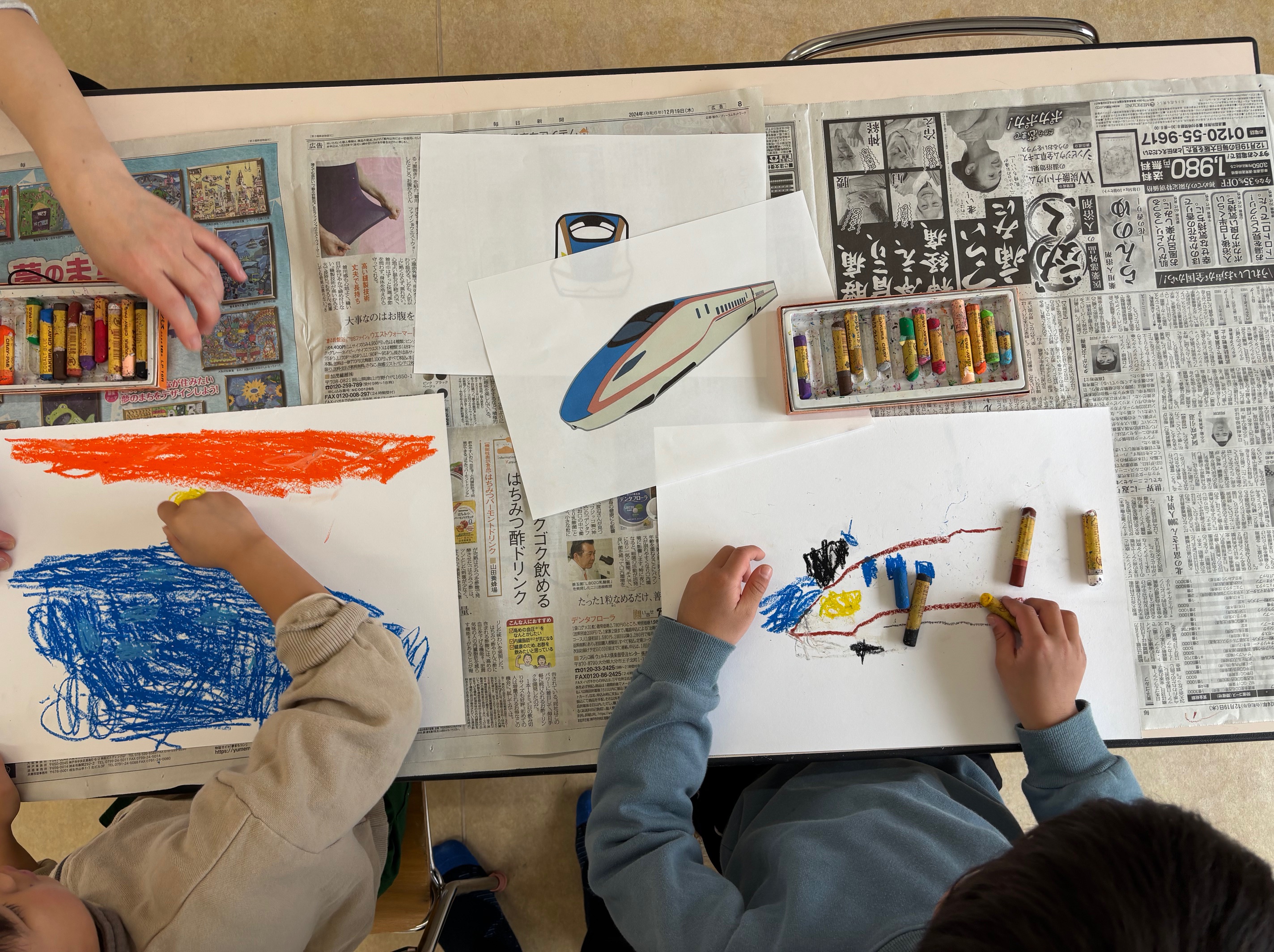 好きな絵をお絵かきしたところ、みんなとても自由で思うとおりに書けていたのにはリーダーもびっくりしました。