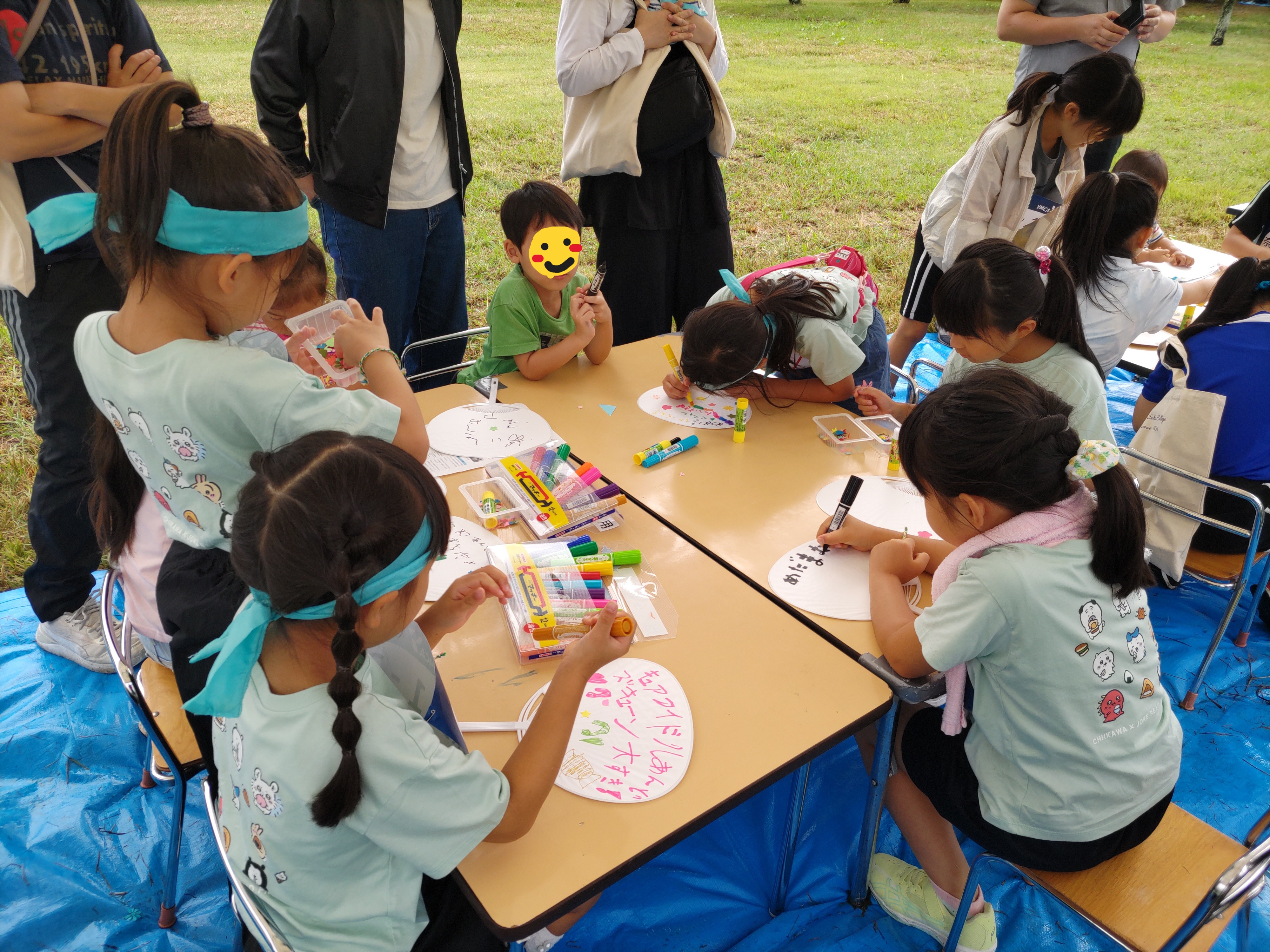 うちわ作りブースでーす。オリジナルのうちわをみんなで作りました♪