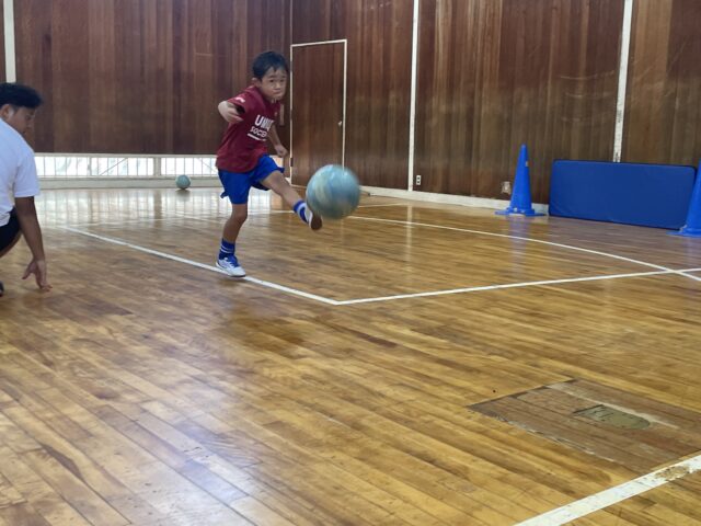 初日は、緊張で体育館に入るのが不安なお友だちもいましたが、ボール⚽️を触ると緊張も吹っ飛び笑顔でボールを追いかけていました😆