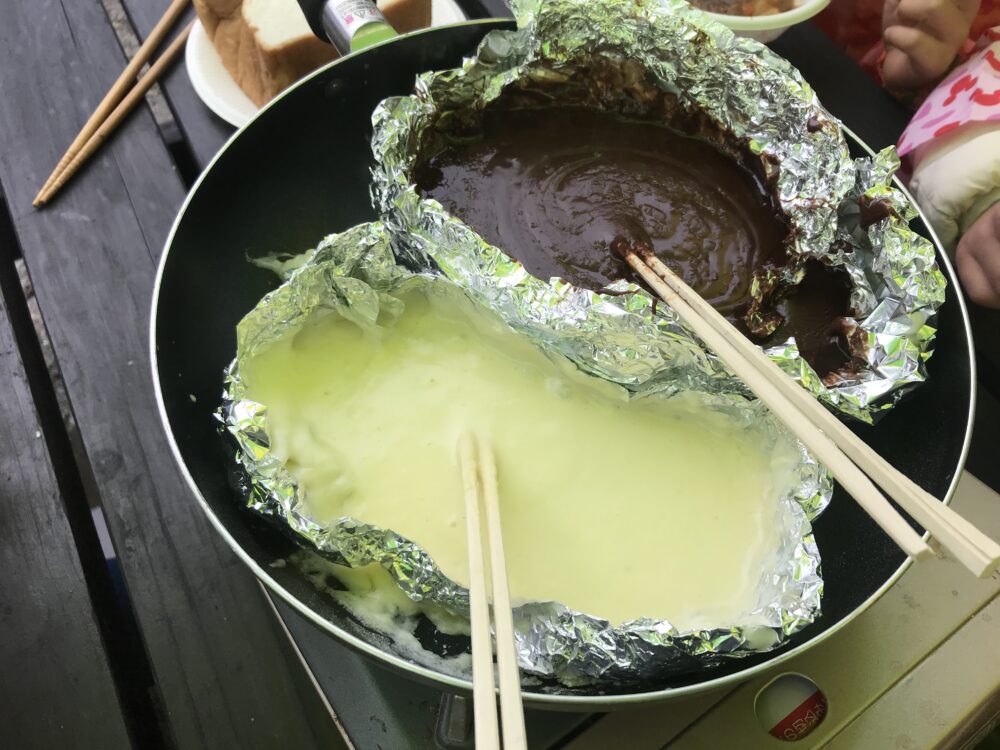 みんな、いろんな食材をチーズやチョコにつけたり、自分たちで作ったビーフシチューを食べたりととても満足そうな表情がたくさん見られました!