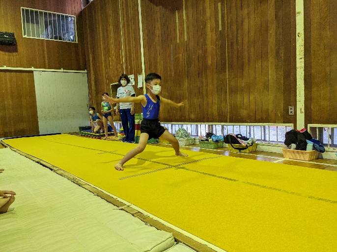 女の子は特に音楽に合わせて演技をするので、笑顔で楽しく演技をしましょう!男の子は、ブリッジや背倒立など止まる技はピタッととめて、かっこいいメリハリのある演技を目指しましょう(*^^*)