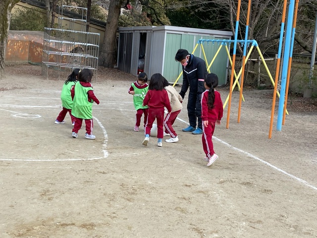 木曜日クラスは、今日もサッカーをしました!ゼッケンの色がちがうだけでみんな大興奮でした。