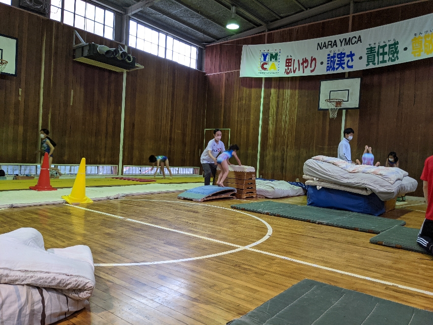 2分間トレーニングでは、手押し車やロイタージャンプから着地止め、ミニトラでジャンプなどしました!着地止めはグループごとに止まった回数を対決しています!今3.4年生の女の子グループが3連勝していますね(*^^*)そのグループを超えられるように頑張りましょう!