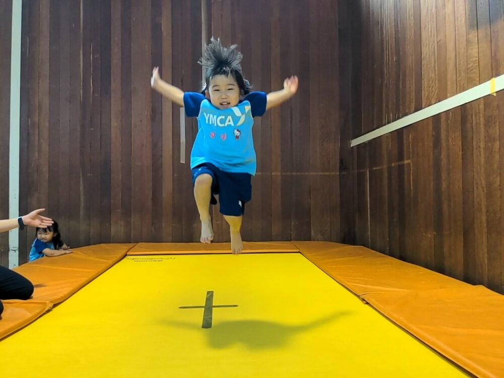 今日は鉄棒とトランポリンのテストでした!練習の成果を発揮できましたか?初めはトランポリンを跳ぶ事も難しかったお友達も徐々に慣れてきて、ハーフターンや、ニードなど様々な技ができるようになりましたね!