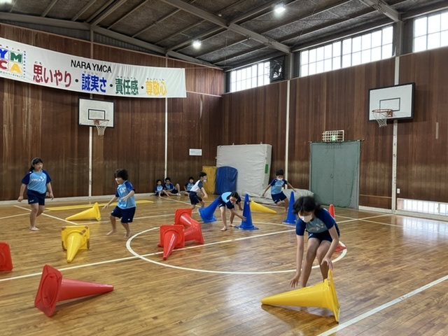 今日は器具は使わず縄跳び、コーン倒しゲーム、ボーリングじゃんけんなど色々なゲームをしました!