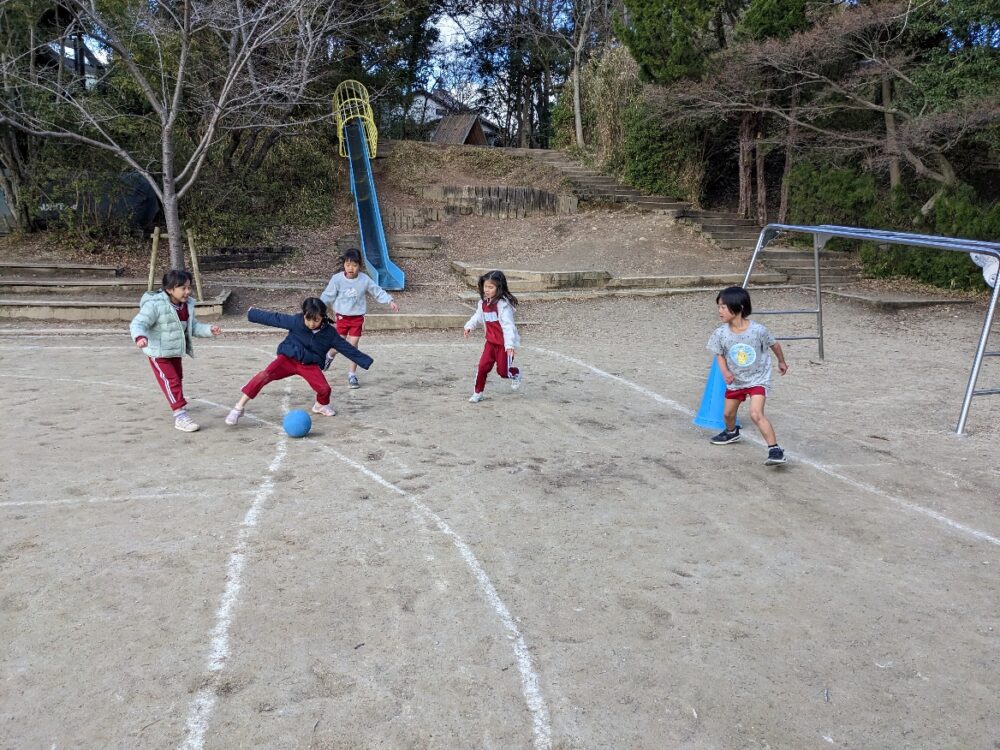 サッカーは、先週と同様でみんな積極的にボールを追いかけて蹴ることができています!1回だけ蹴るのではなく、頑張ってドリブルをしてシュートまでボールを運べるように頑張りましょう!