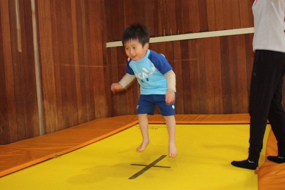 しっかり同じところで跳べるようになってきたね!順番待ちの間も上手に座って待っていてくれました。
