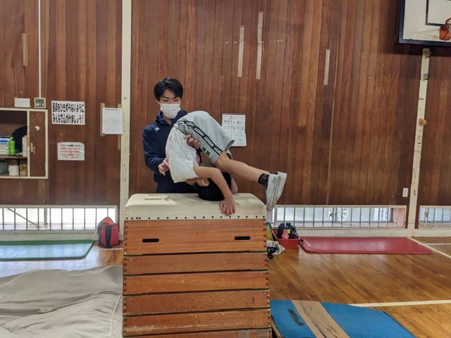 昨日に引き続いてマットで基礎運動と跳び箱の踏切練習をしました!跳び箱を跳ぶ時に大事な動きなのでロイター板の踏み方や、手のつき方などを意識しながら丁寧に練習しました!