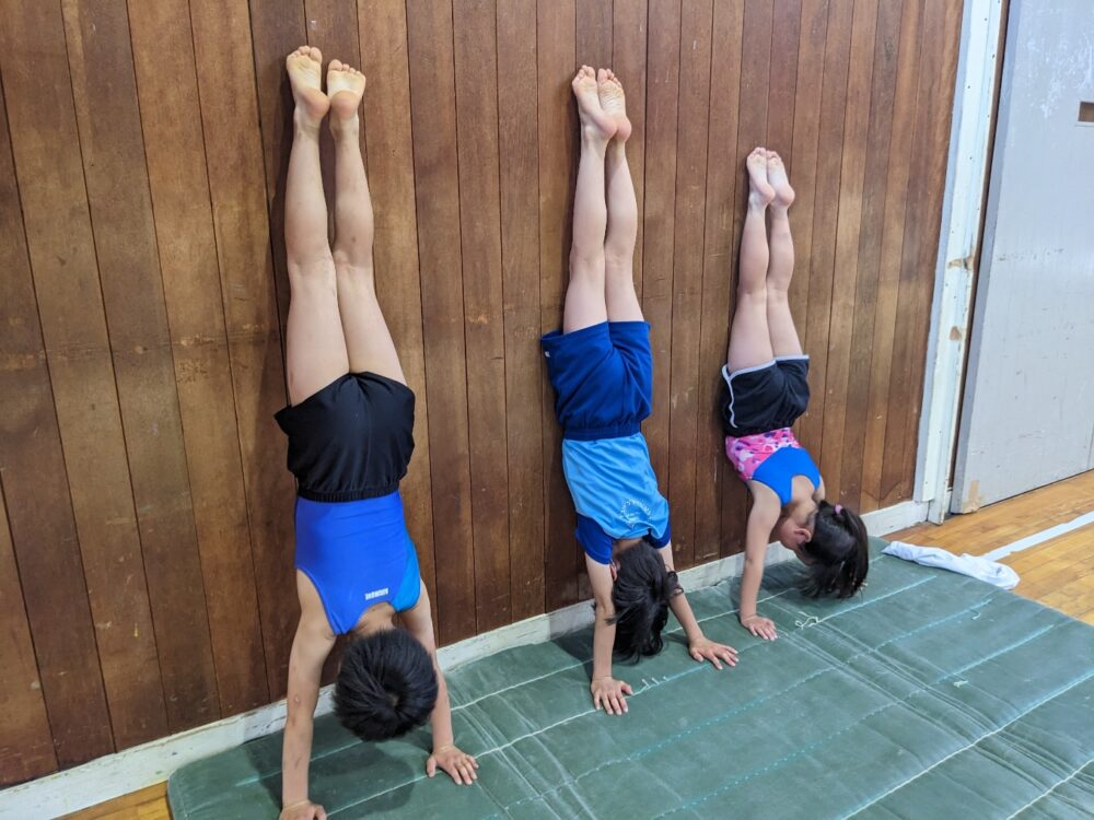 2分間トレーニングでは、鉄棒や手押し車などをしました!ロイタージャンプでは、最後の1歩を大きく出せるように、印をおいて練習しました。また、壁倒立にも挑戦しました!まずは1分間きれいな姿勢でできるよう頑張りましょう(*^^*)