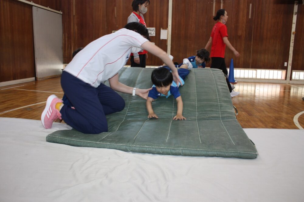 壁から壁へといろいろな動きで歩きました。キリンさんのポーズもきっちりできるようになってきたね!