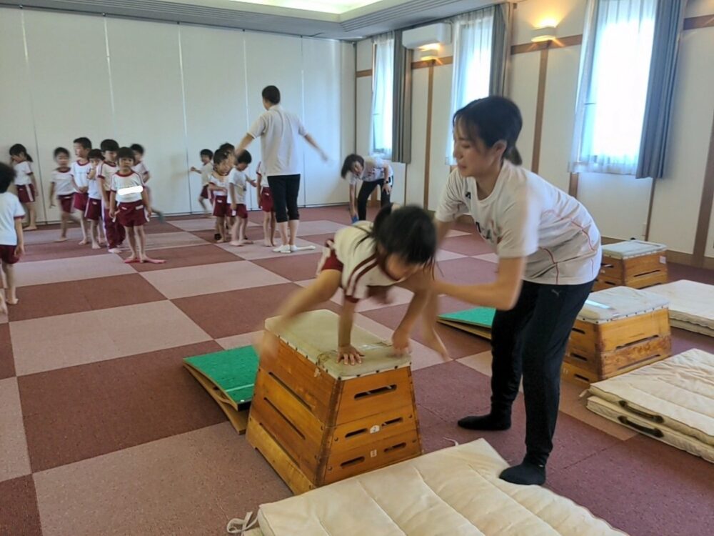 跳び箱では、足を運ぶ練習をして成果が出て、リーダーのお手伝い無しでとべそうなお友だちが増えましたね!