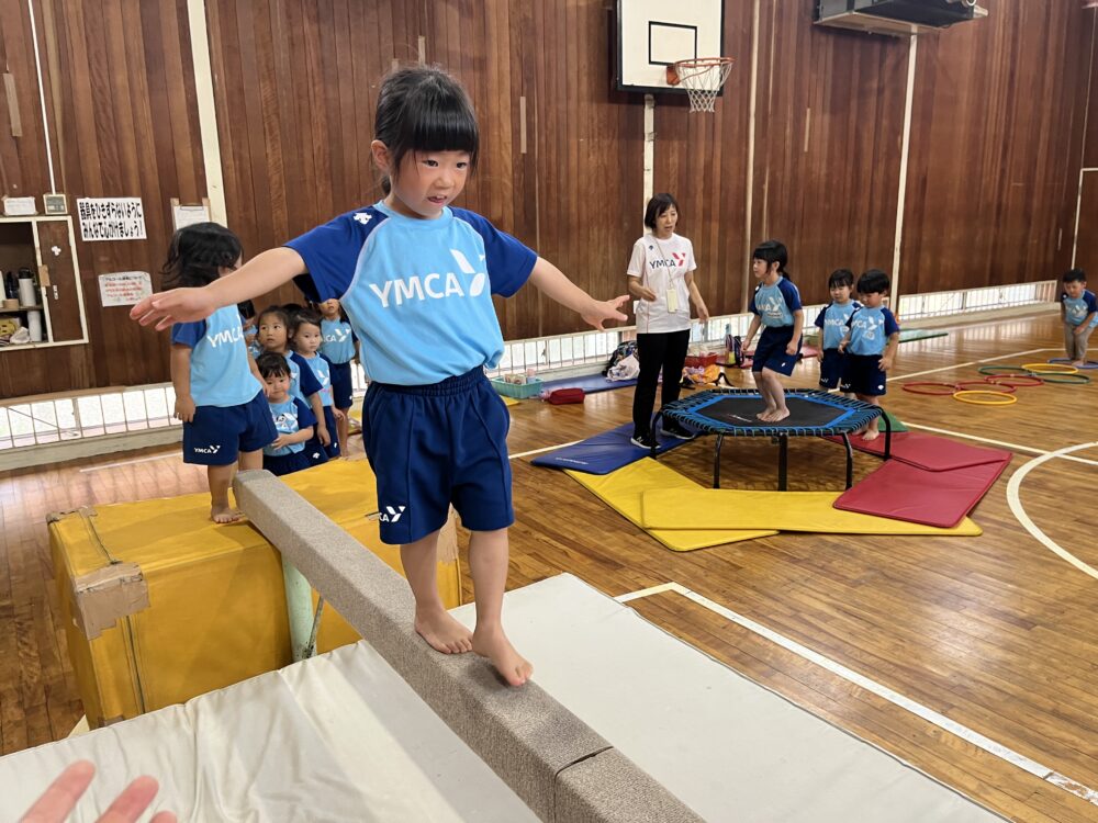 最初は慎重に歩いていた高平均台も後半にはスイスイ歩けるようになっていました^ ^
