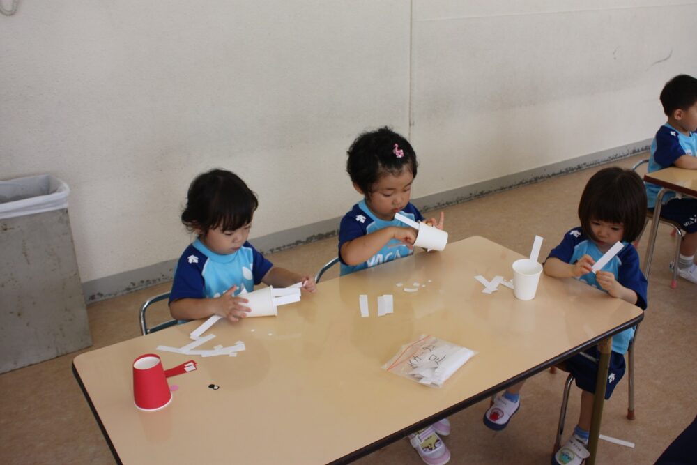 今日の製作はイカ作りです。前回と工程はほぼ同じなので、みんなてきぱきと作ってくれていました。次はお魚を作りま~す!
