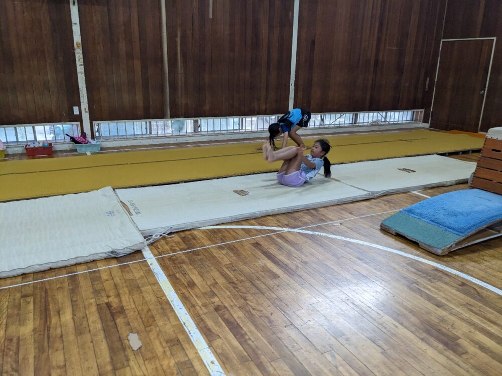 そのあと、今週も側転チームと転回チームに分かれました!側転チームのお友だちは、まっすぐ側転ができるようになってきましたね!転回チームは、今日は跳び箱の転回をは頑張りました!助走の勢いをもらってジャンプできるようにしていきましょう!