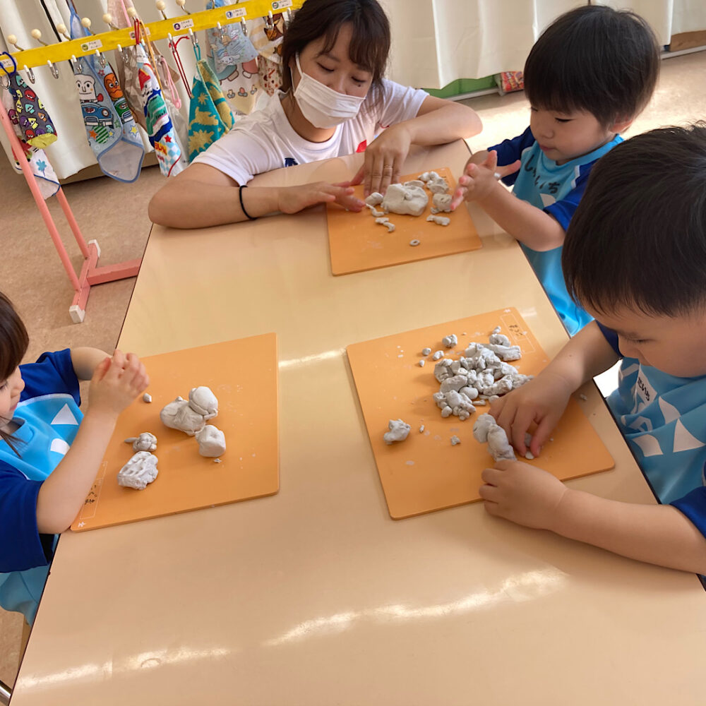 色々なお話が飛び出しながらそれぞれの世界で楽しく遊んでいました。リュックの中に使った粘土を入れてますので、おうちでも遊んでみてくださいね(^_-)-☆