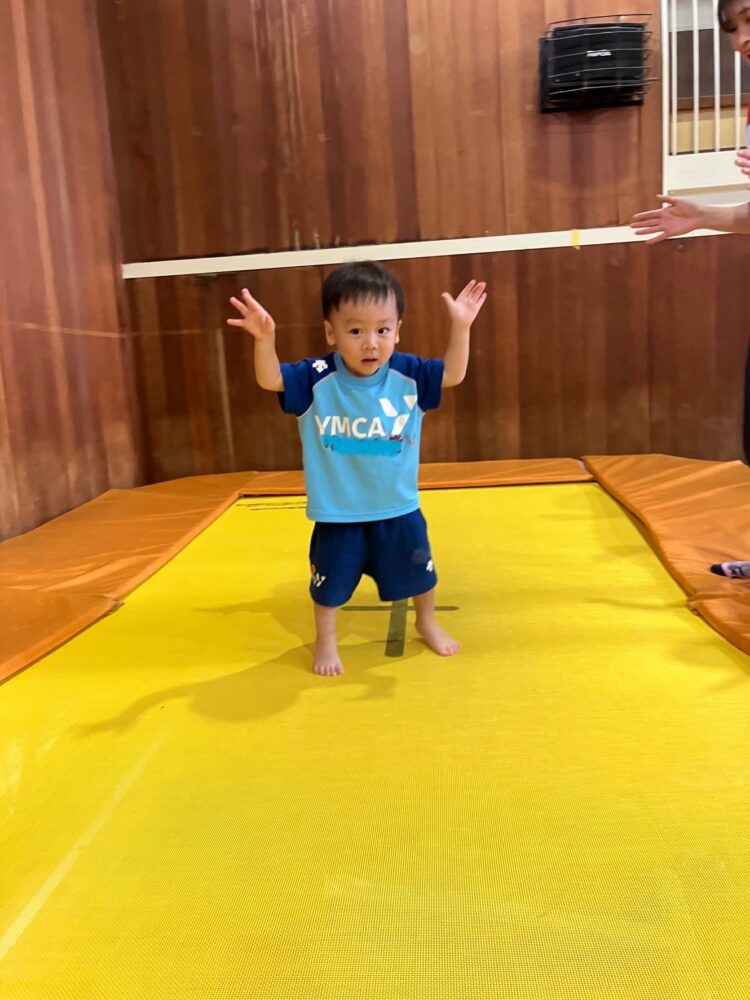 今日で2学期のトランポリン最終日ということで、エビカニクスの体操を踊ってからすぐにトランポリンに入りました。順番を待っている間も、早く跳びたくてそわそわしていましたが、待っていたら早く跳べる!と伝えていたら上手に座って待っていましたよ~(^^♪