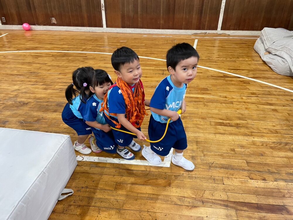 仲良く電車ごっこ!この後、どしーんとみんなで尻もちをついてましたが楽しそう!