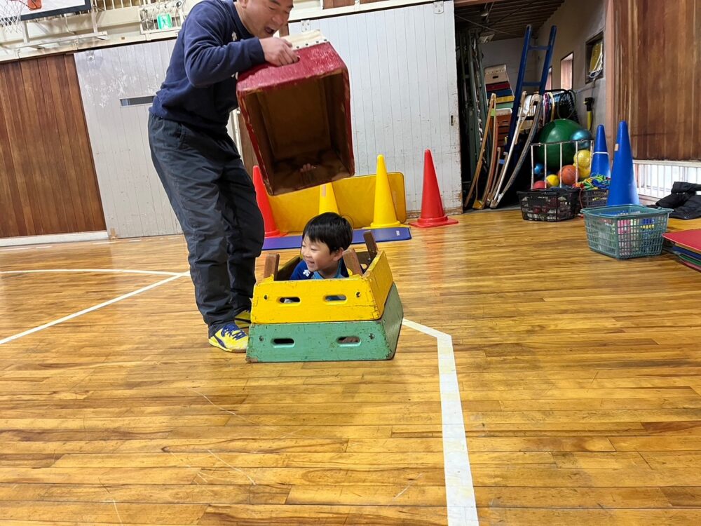 くぐったり、前転したりしっかり取り組んでくれました。ちなみに、今日のぼよよん体操は全員バッチリ踊っていました(笑)