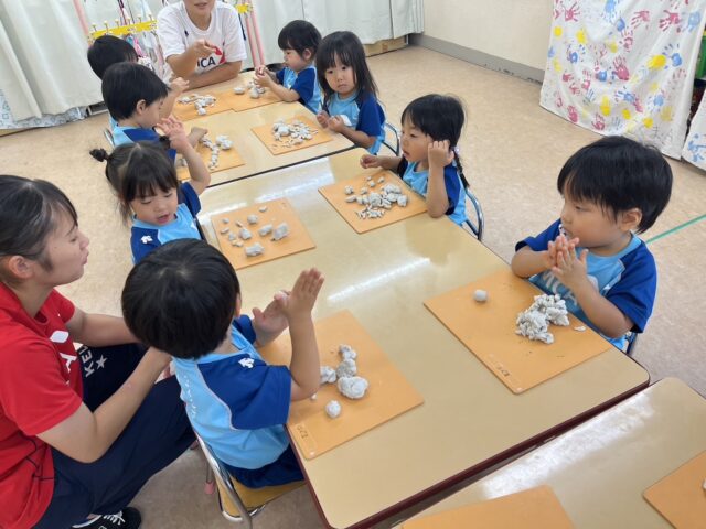 お部屋では最後の粘土遊びをしました。みんなすっかり粘土遊びが大好きに!たくさんお話しながら、いろいろなかわいいものを作ってくれていました。またおうちでも遊んでみてくださいね!