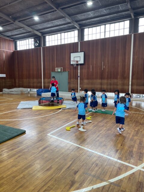 サーキットは次回のクラスの時からトランポリンをするので、ミニトランポリンで練習しました。