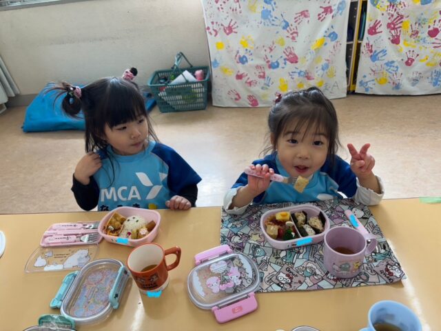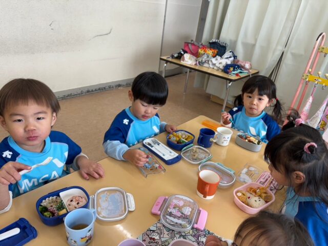 そして、今日は楽しみにしていたお弁当の日です。みんな大きなお口で食べてたね~。モリモリ食べて、元気100倍~なんて話ながら楽しく完食!集中して食べてくれるので、あっという間に食べ終わりました。みんなはなまる!!