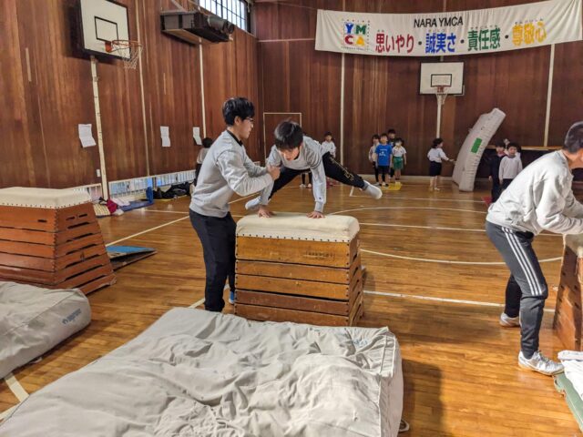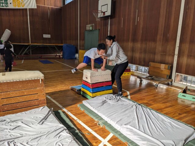 最後は跳び箱をしました。昨日より高い段数にチャレンジできたお友だちが多かったですね(*^^*)高くなると少し怖くなってきますが、まずジャンプをしっかりして、手もしっかり使って跳ぶようにしていきましょう!