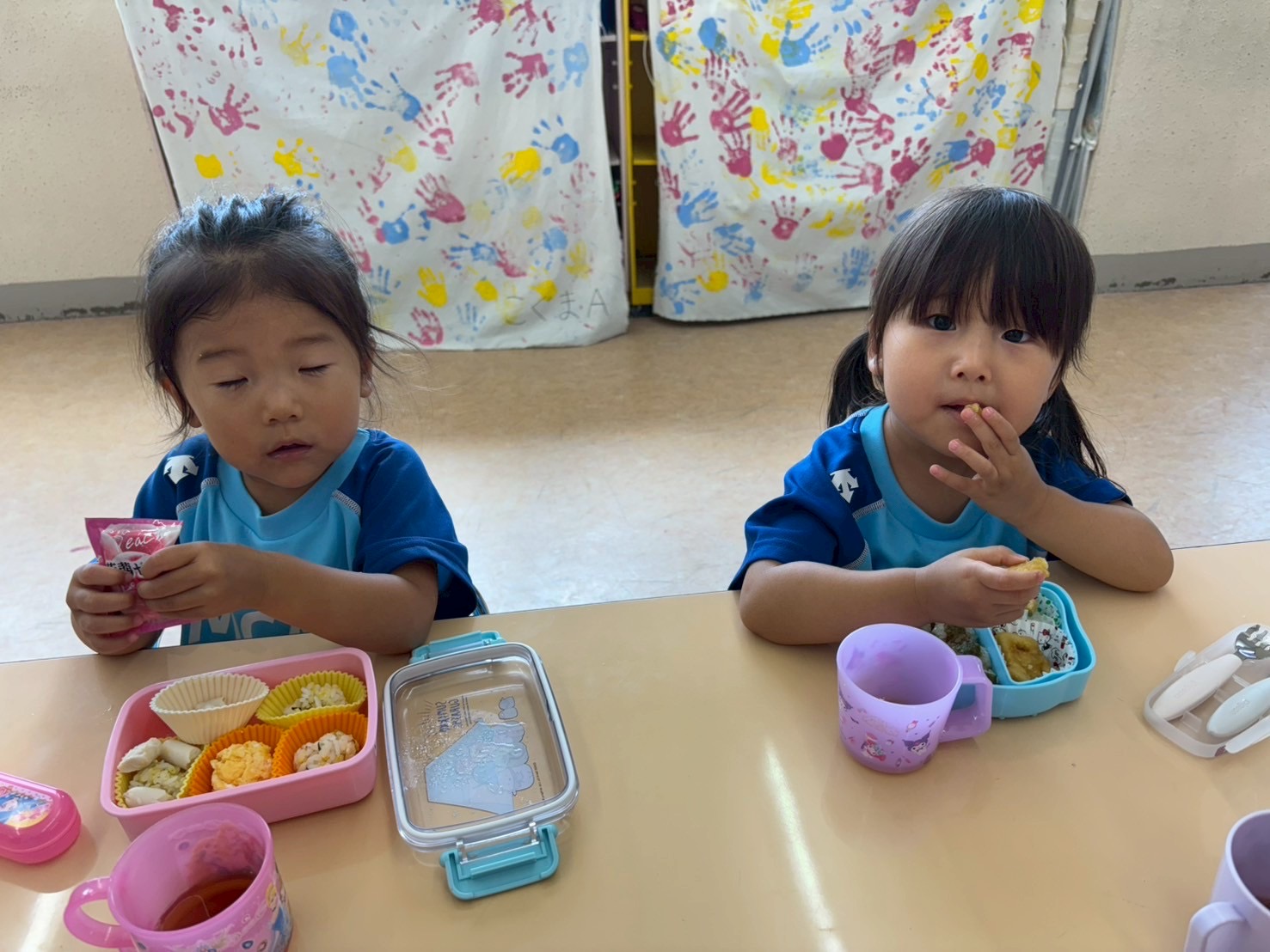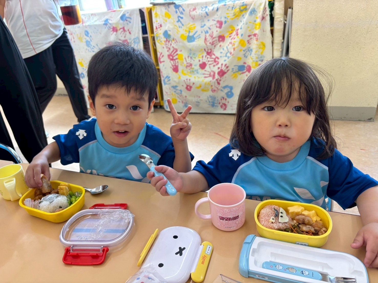 今日は初めてのお弁当日でした。朝からそれぞれがお弁当箱の柄や、入っているおかずなどの話を嬉しそうに報告してくれていました。お弁当がうれしくて楽しみで仕方ないという感じがかわいいかったです(#^.^#)