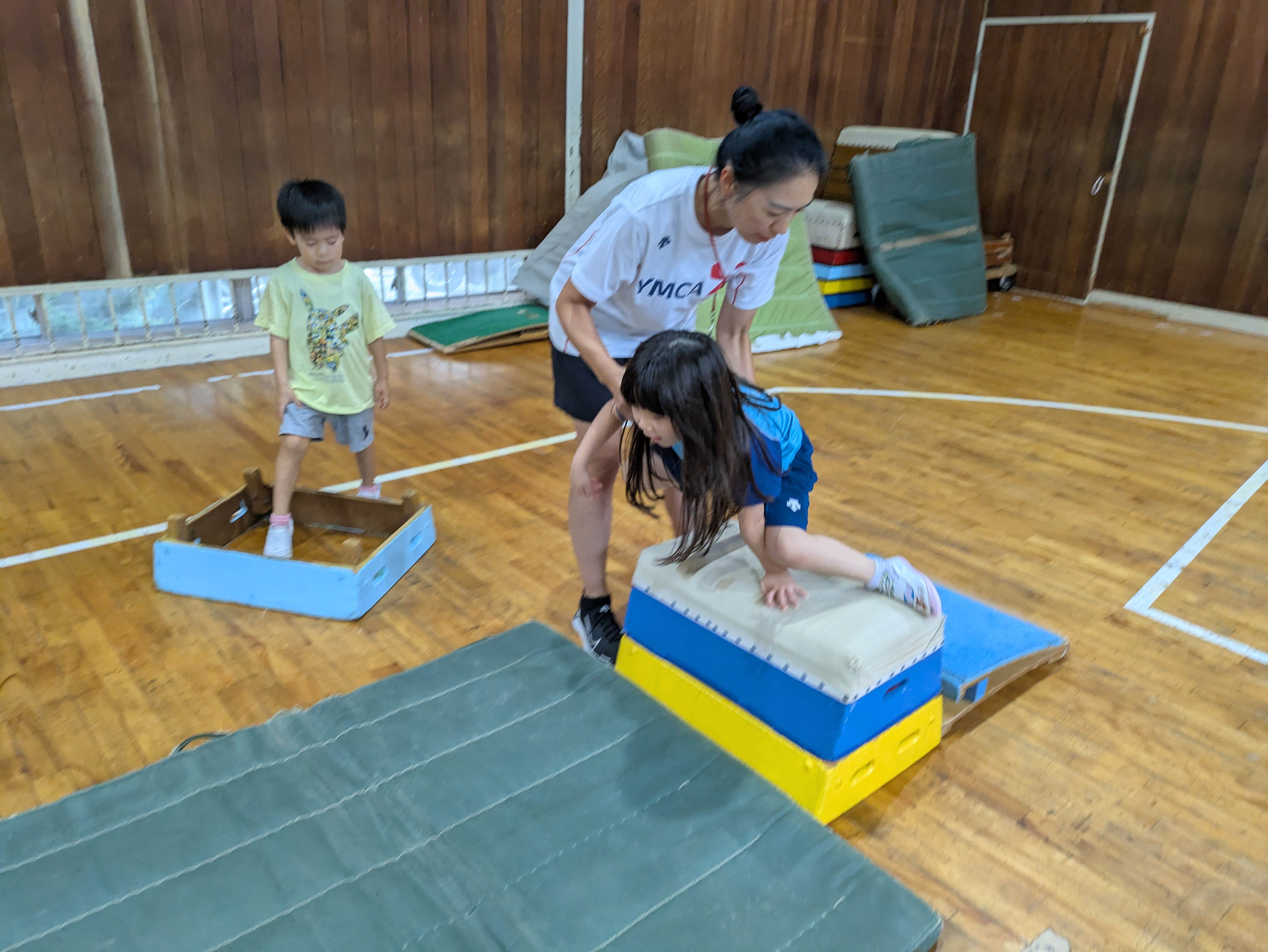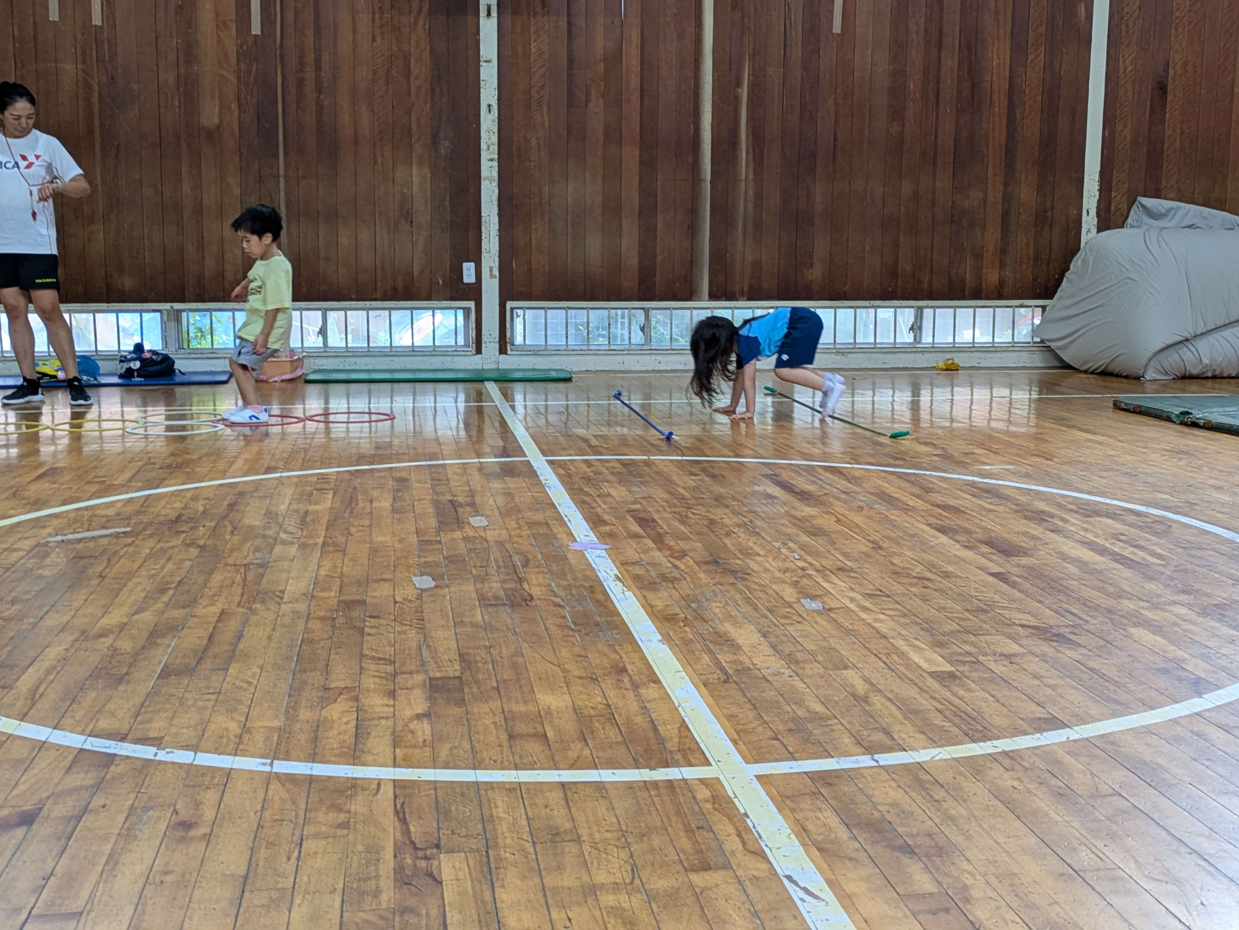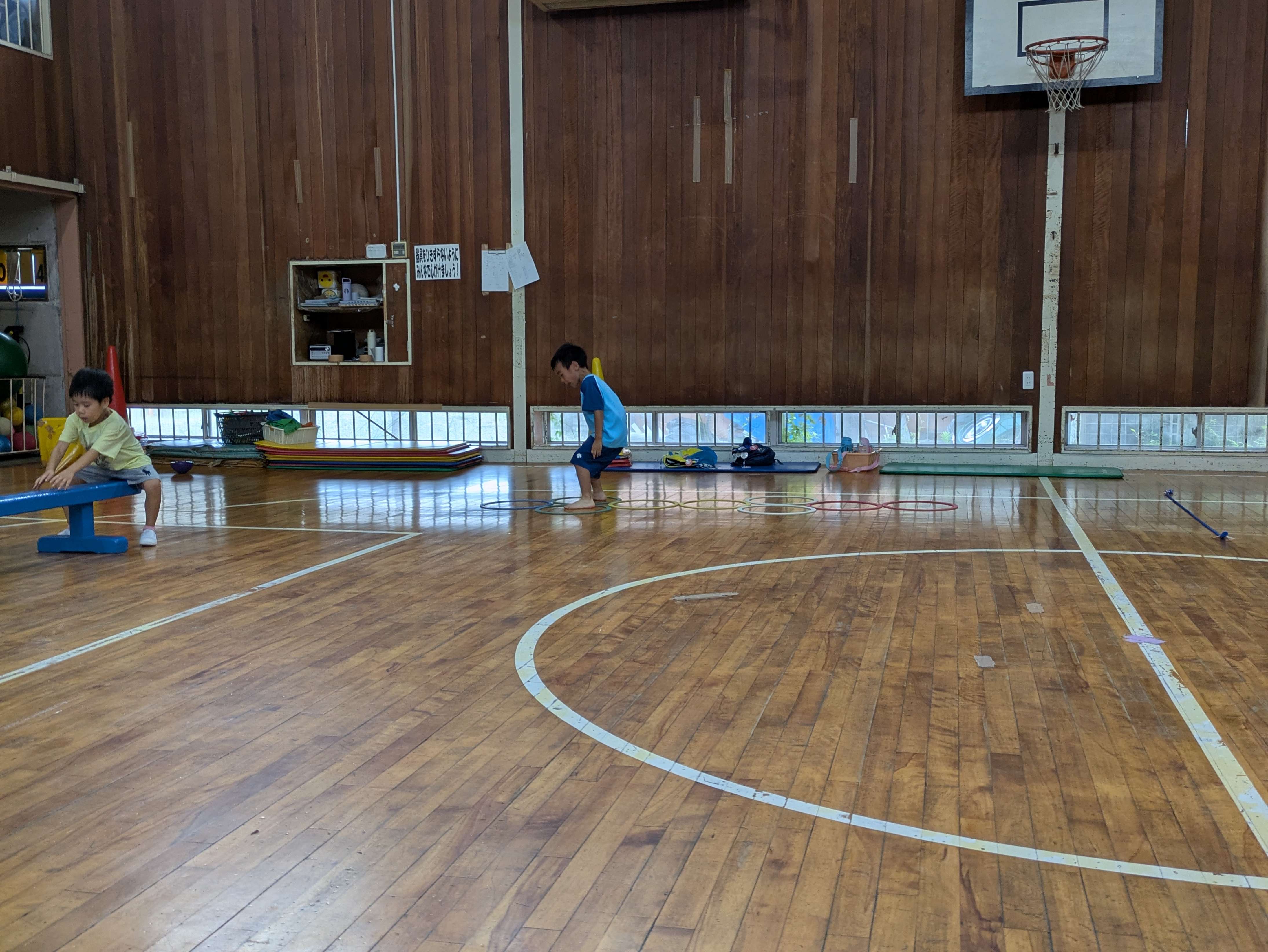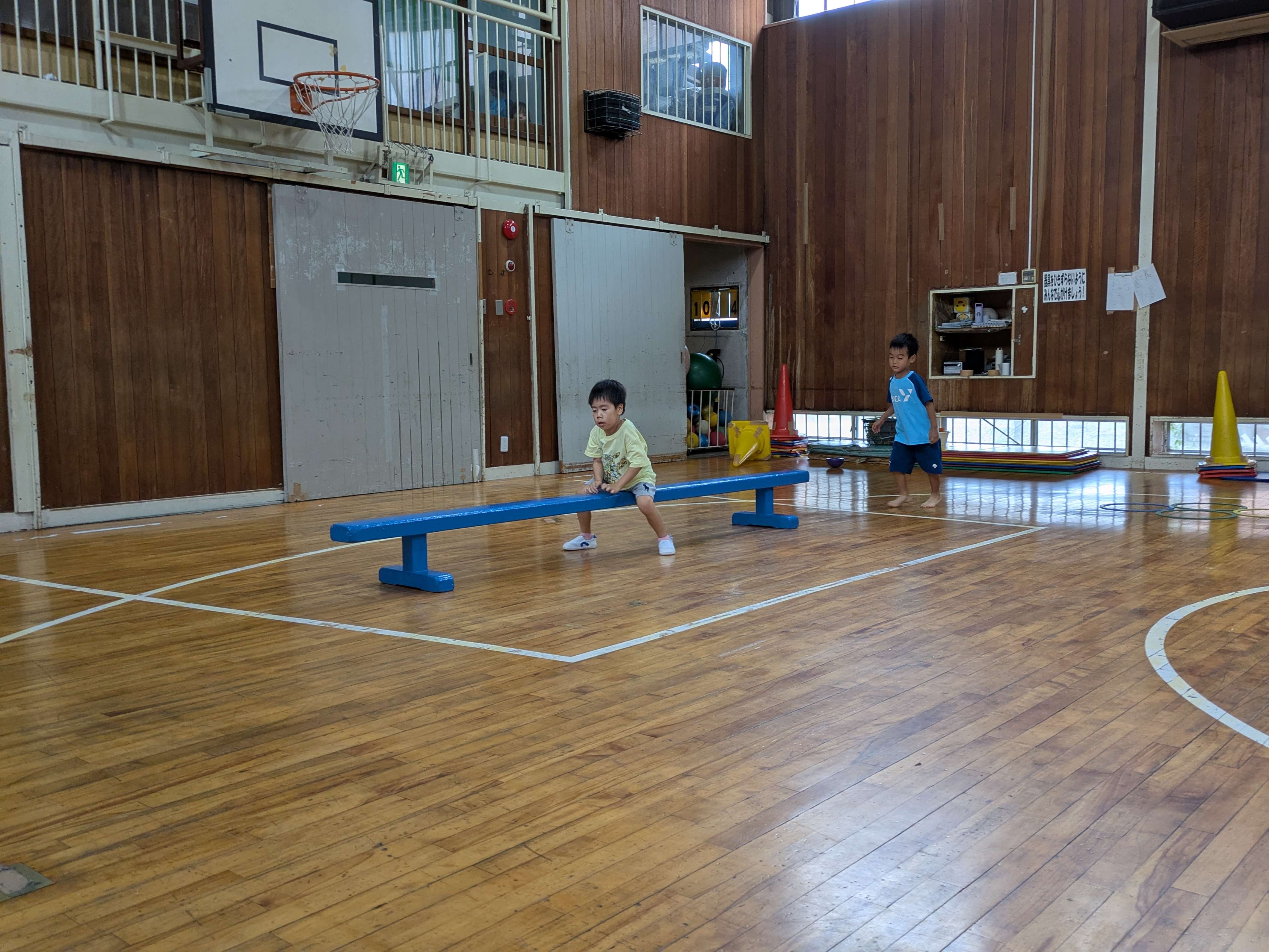 跳び箱で必要なロイタージャンプの確認をしたり、マットでは前転をしました。しっかり小さくなったまま回り、手をつかずに立てるように頑張りましょう!