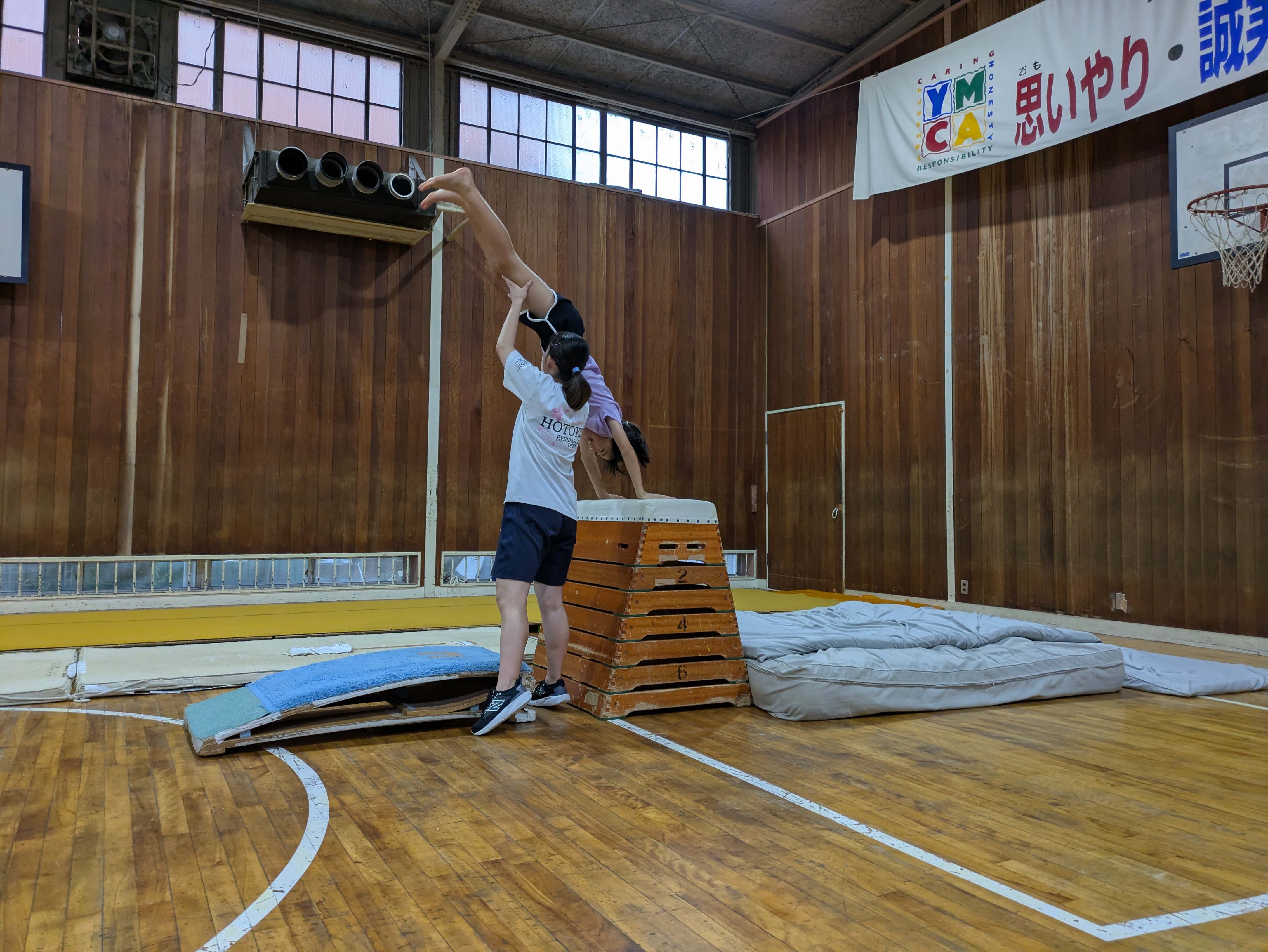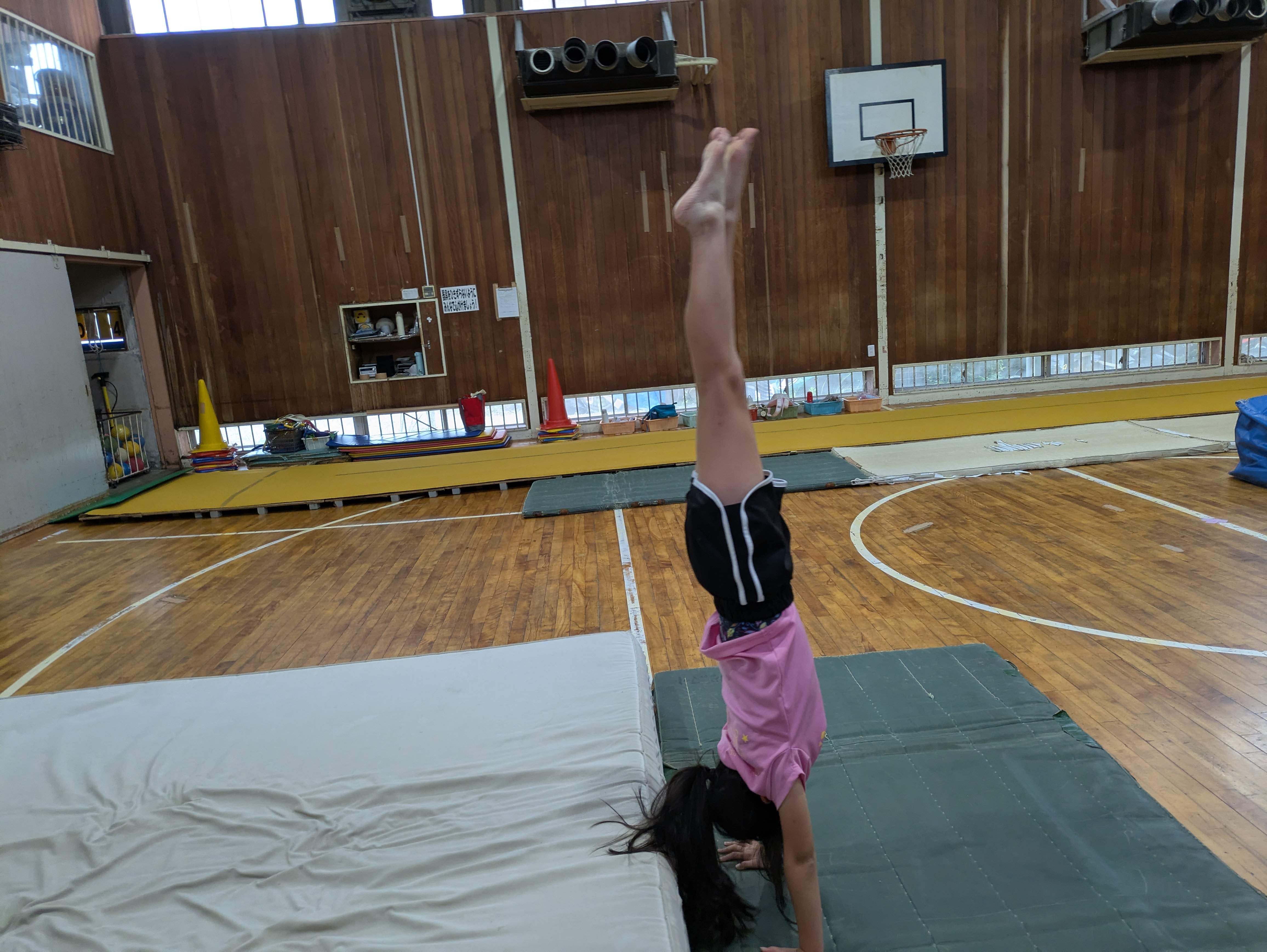 2分間トレーニングでは、倒立パタンや手押し車などをしました。