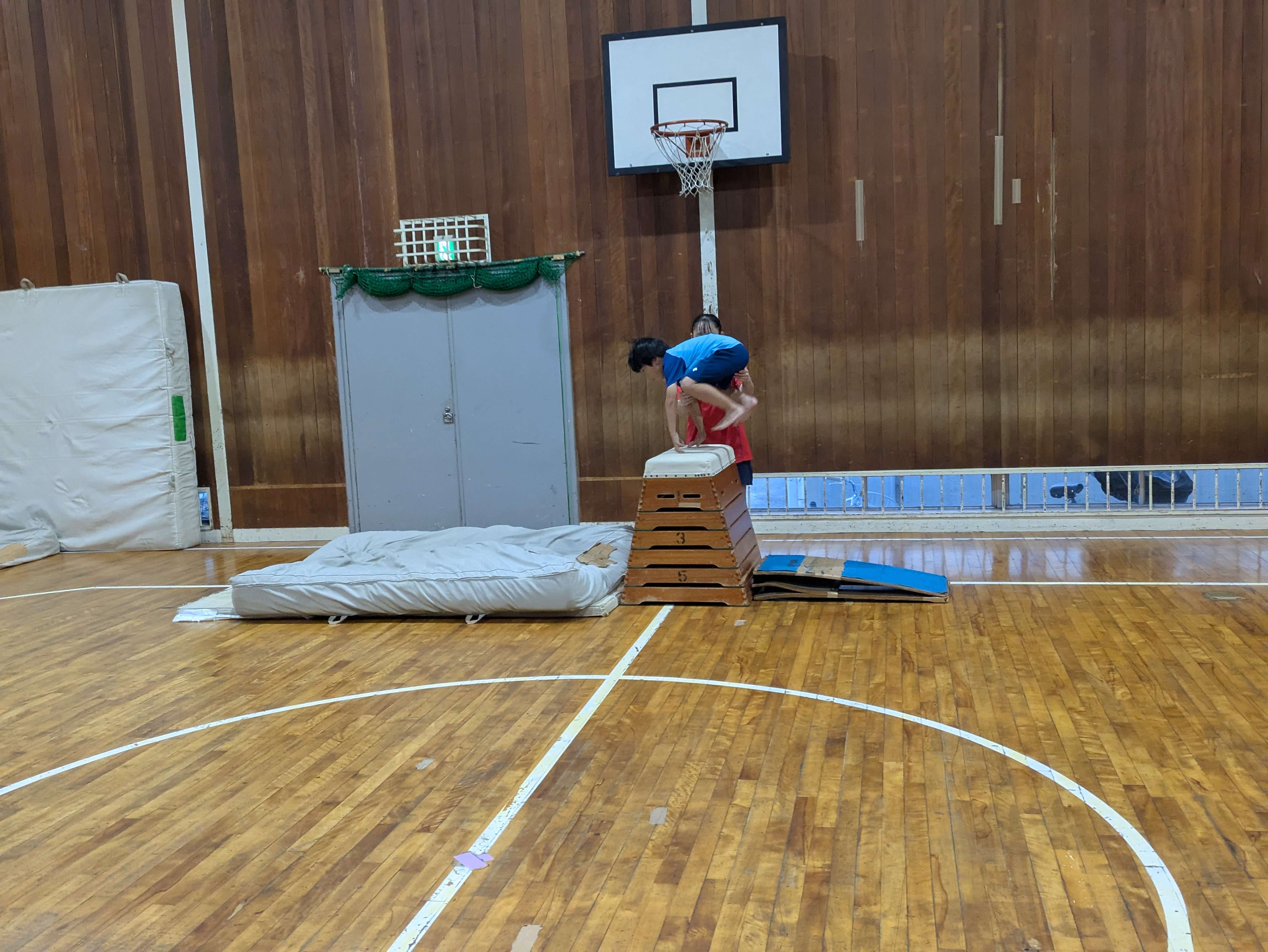 そのあと、跳び箱サーキットをして跳び箱とマットをしました。