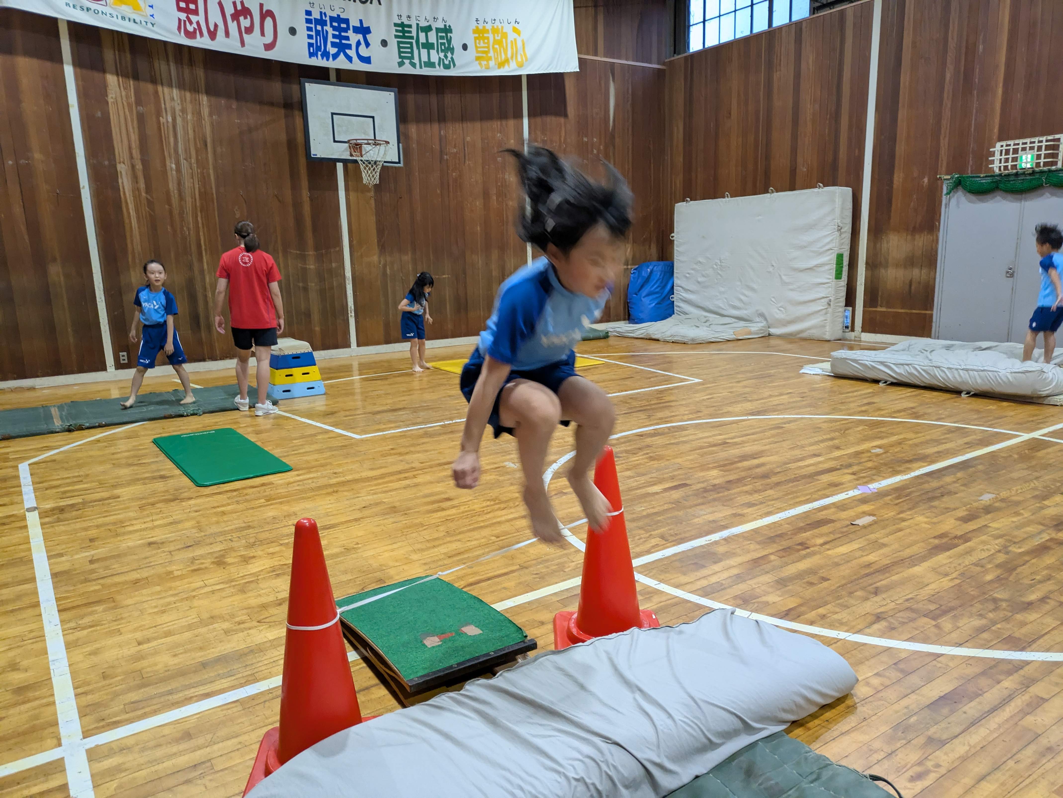 跳び箱サーキットでもつま先をしっかり使ってジャンプをすることを頑張りました!