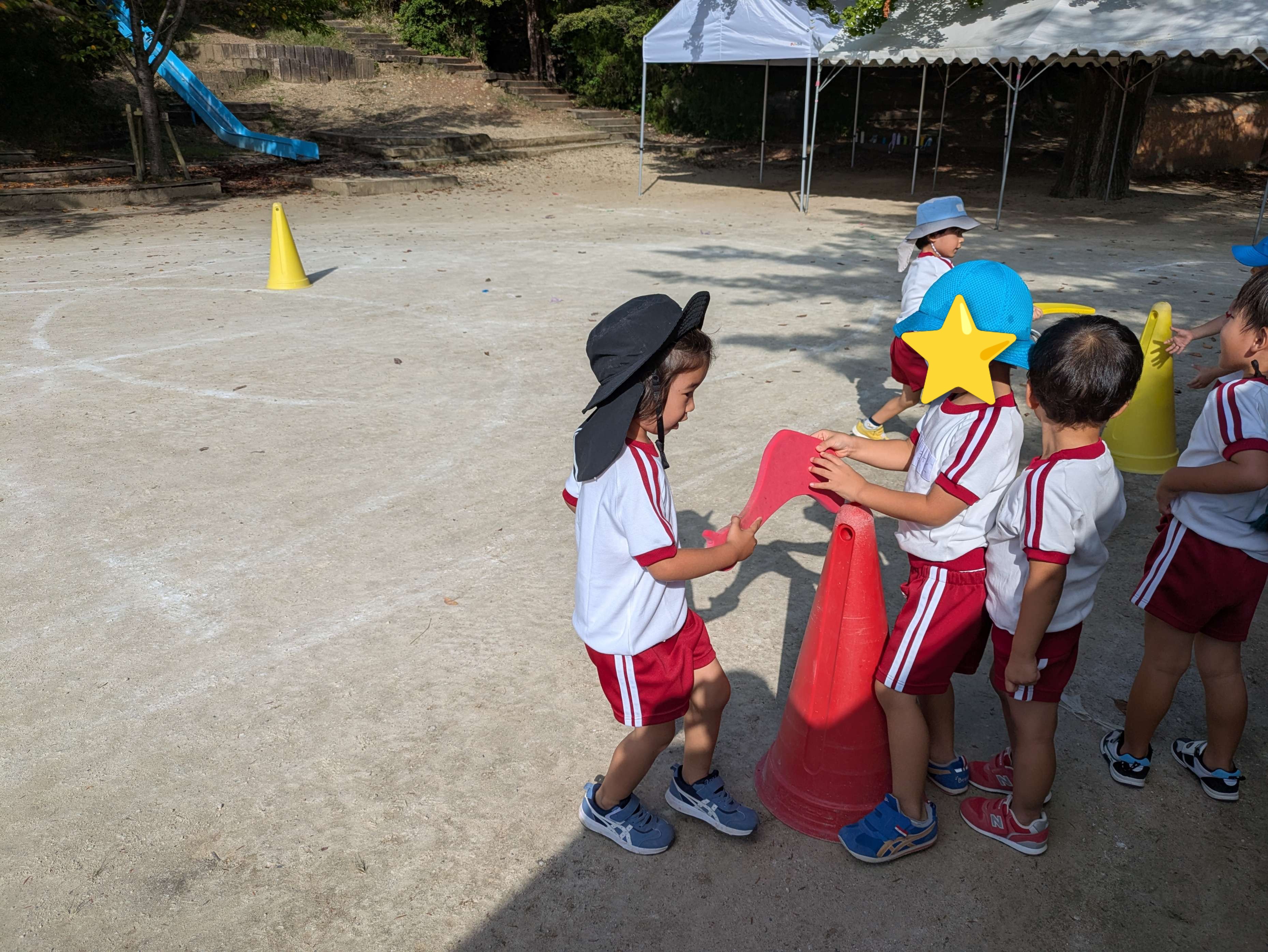 リレーでは、ジャンプやゴムをくぐるなどの障害物もいれて行いました!