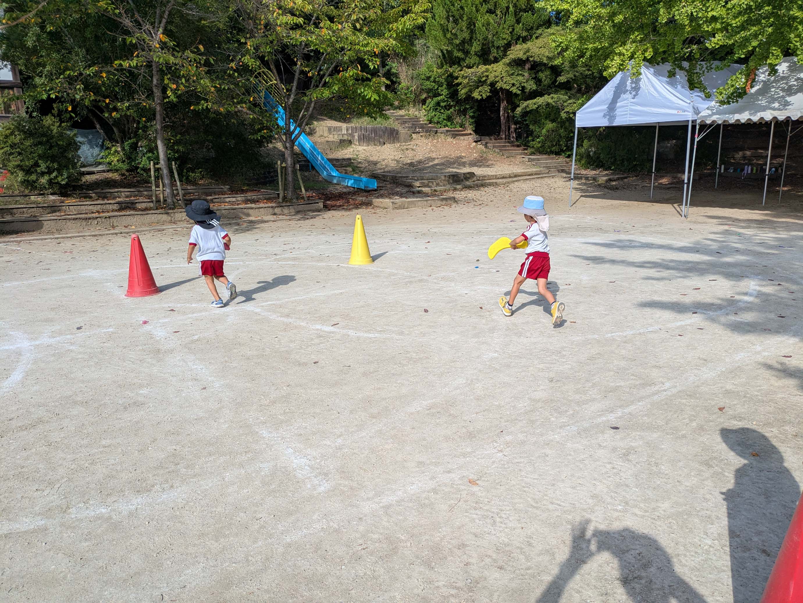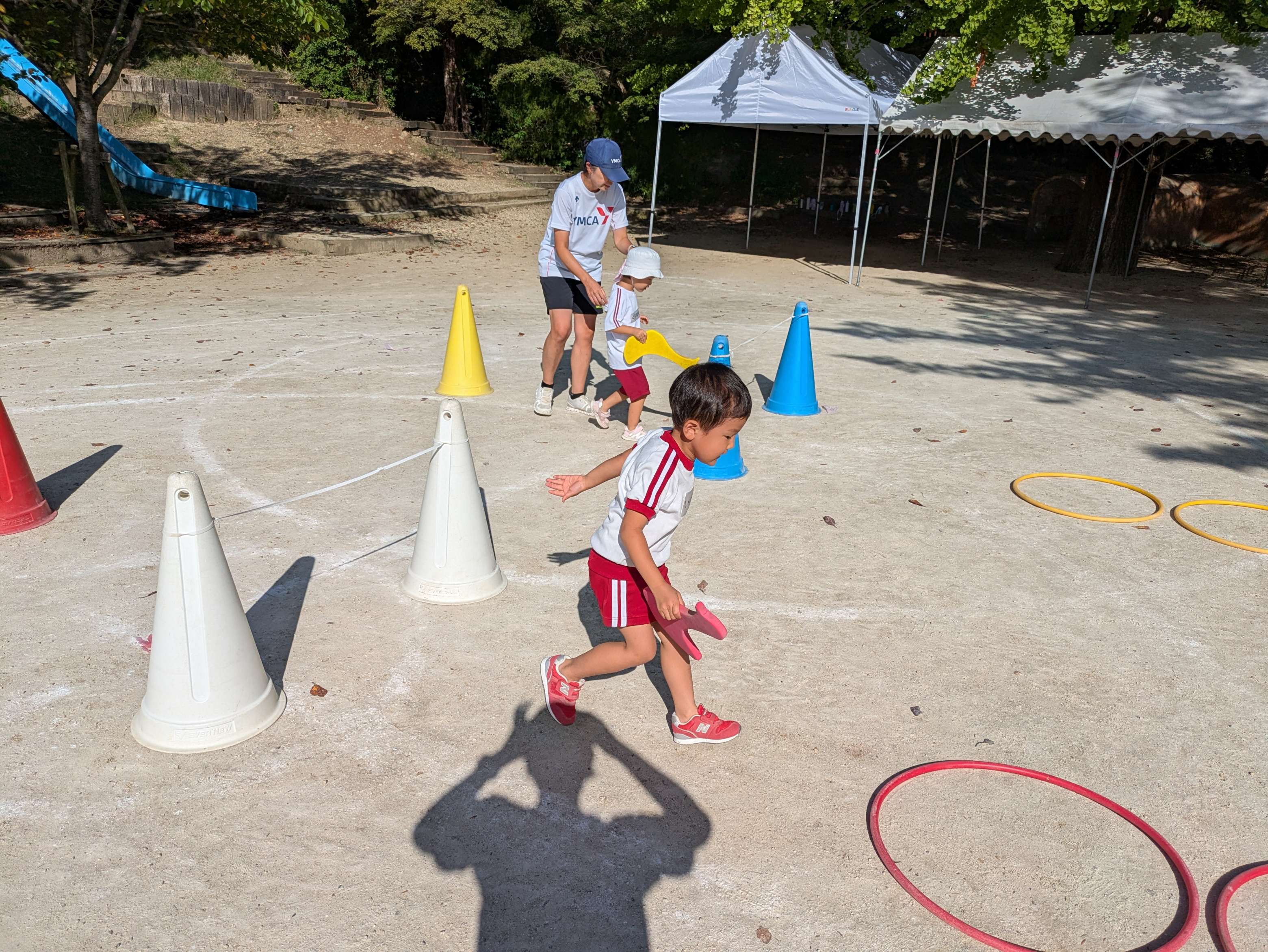 前回走る練習をしたことを思い出して、しっかり腕を振って走ることができていましたね!