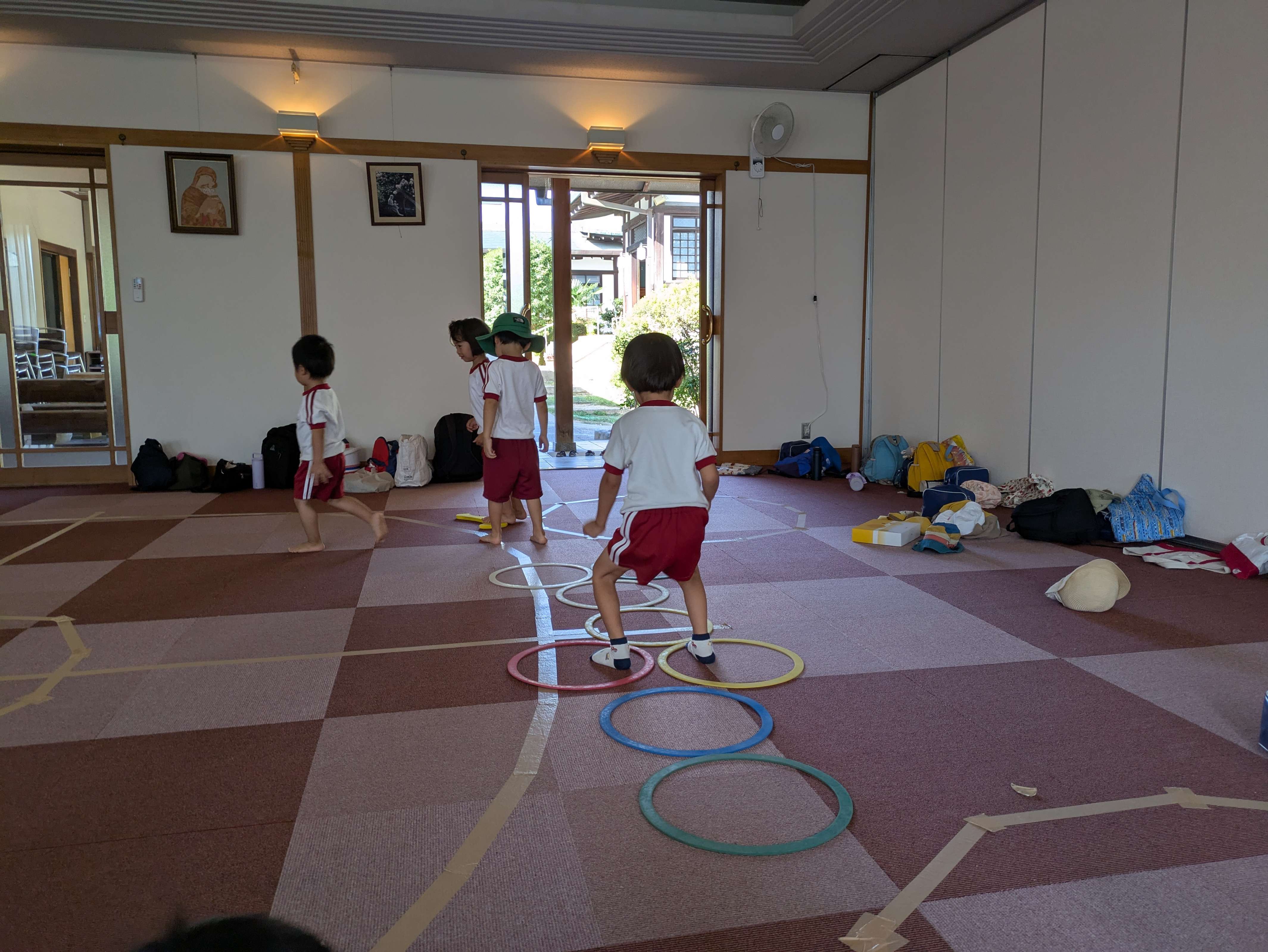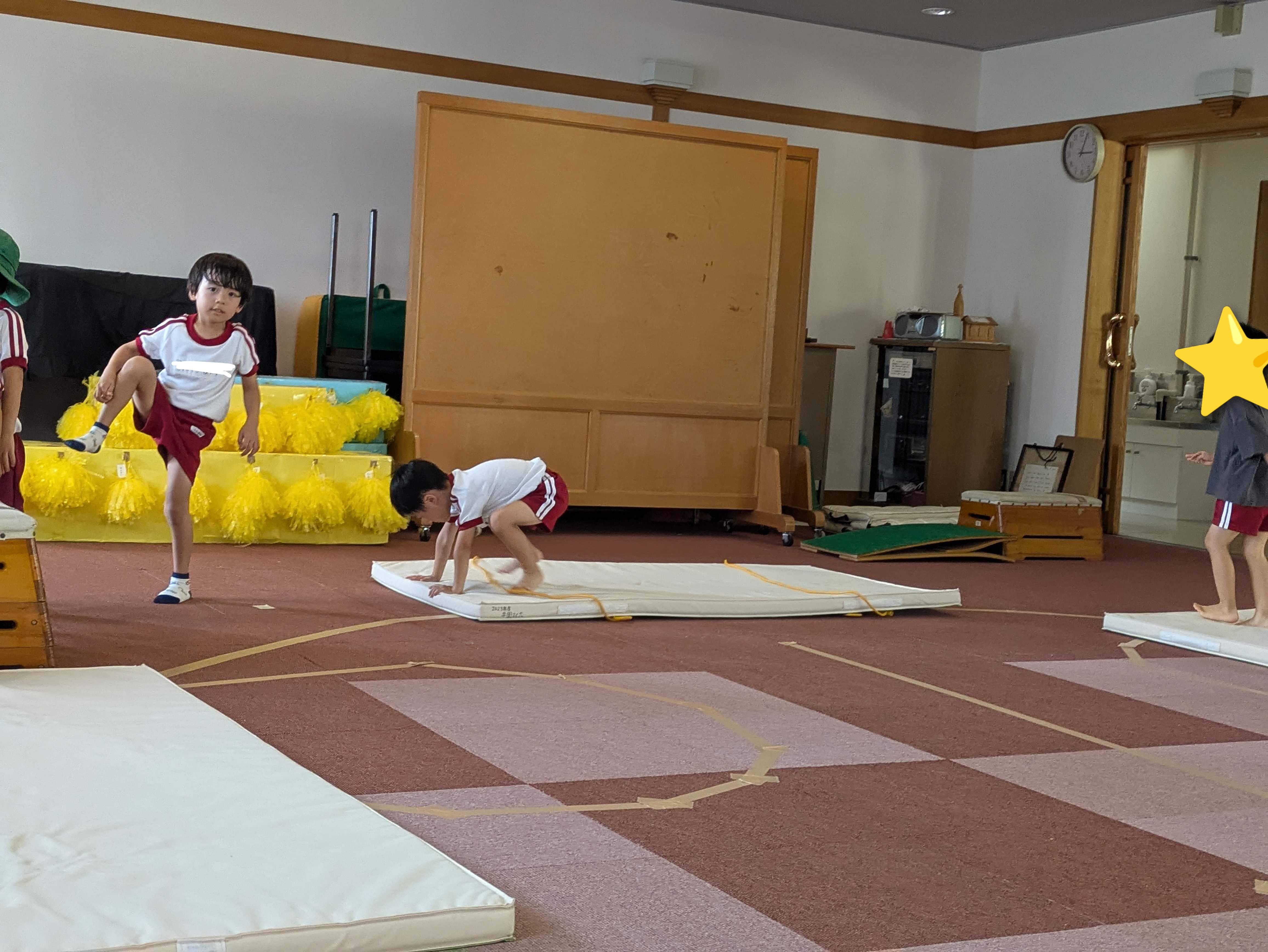 そのあと、ホールに入ってサーキットと跳び箱をしました。