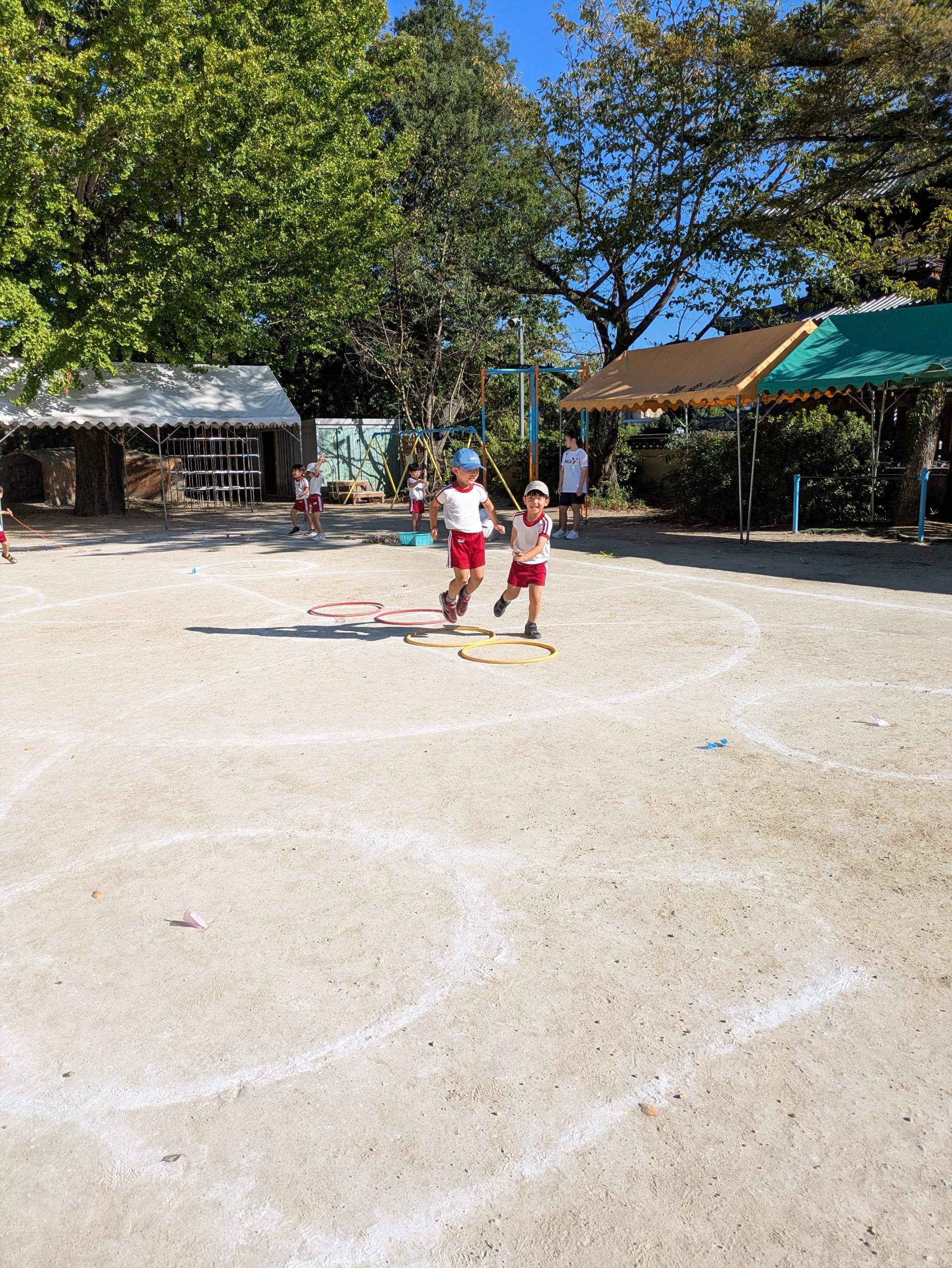 しっかりリーダーにおへそを向けたまま跳ぶことができましたね!前や横に動いてしまうお友だちが多いので、その場で跳べるように頑張りましょう!