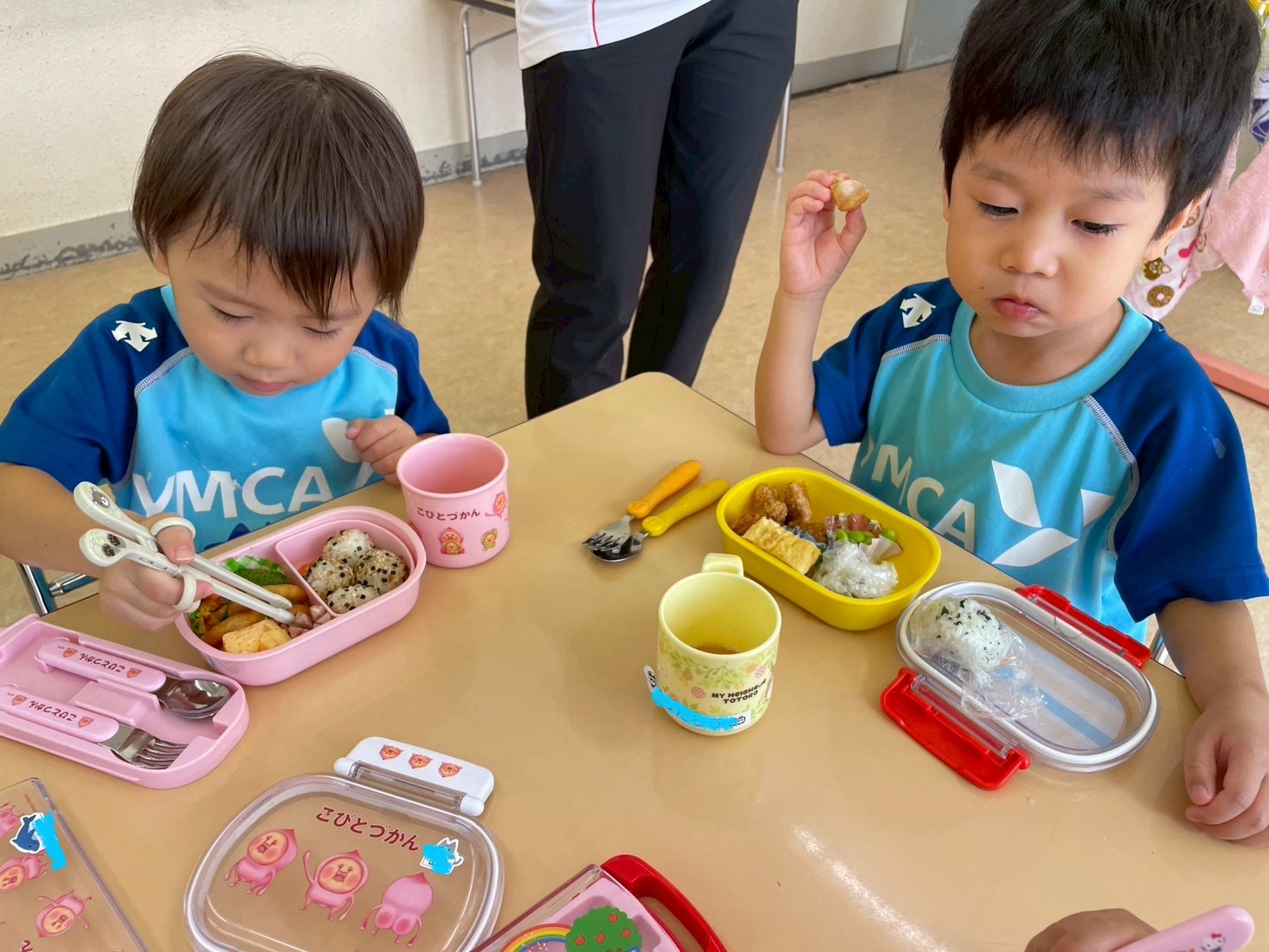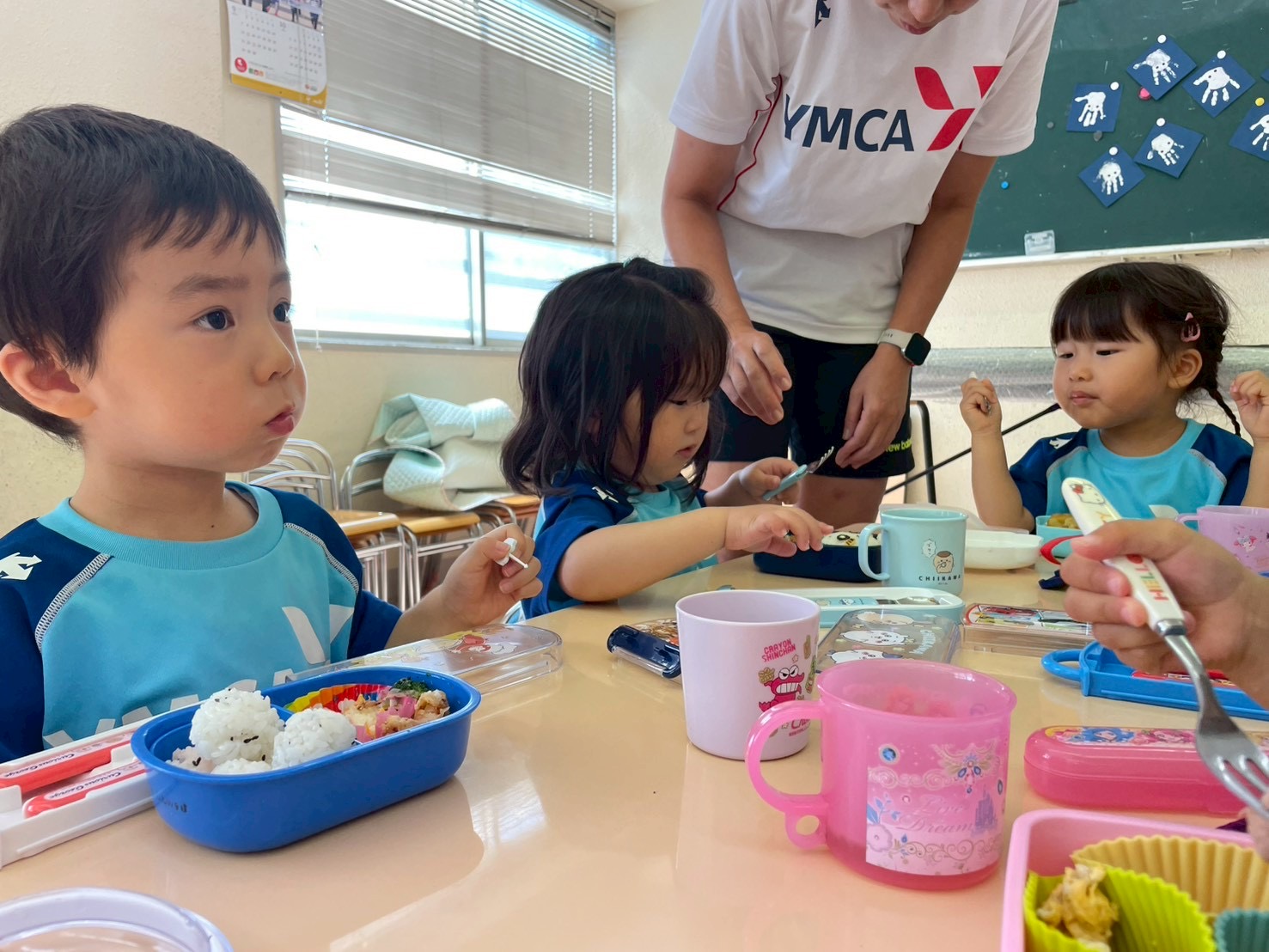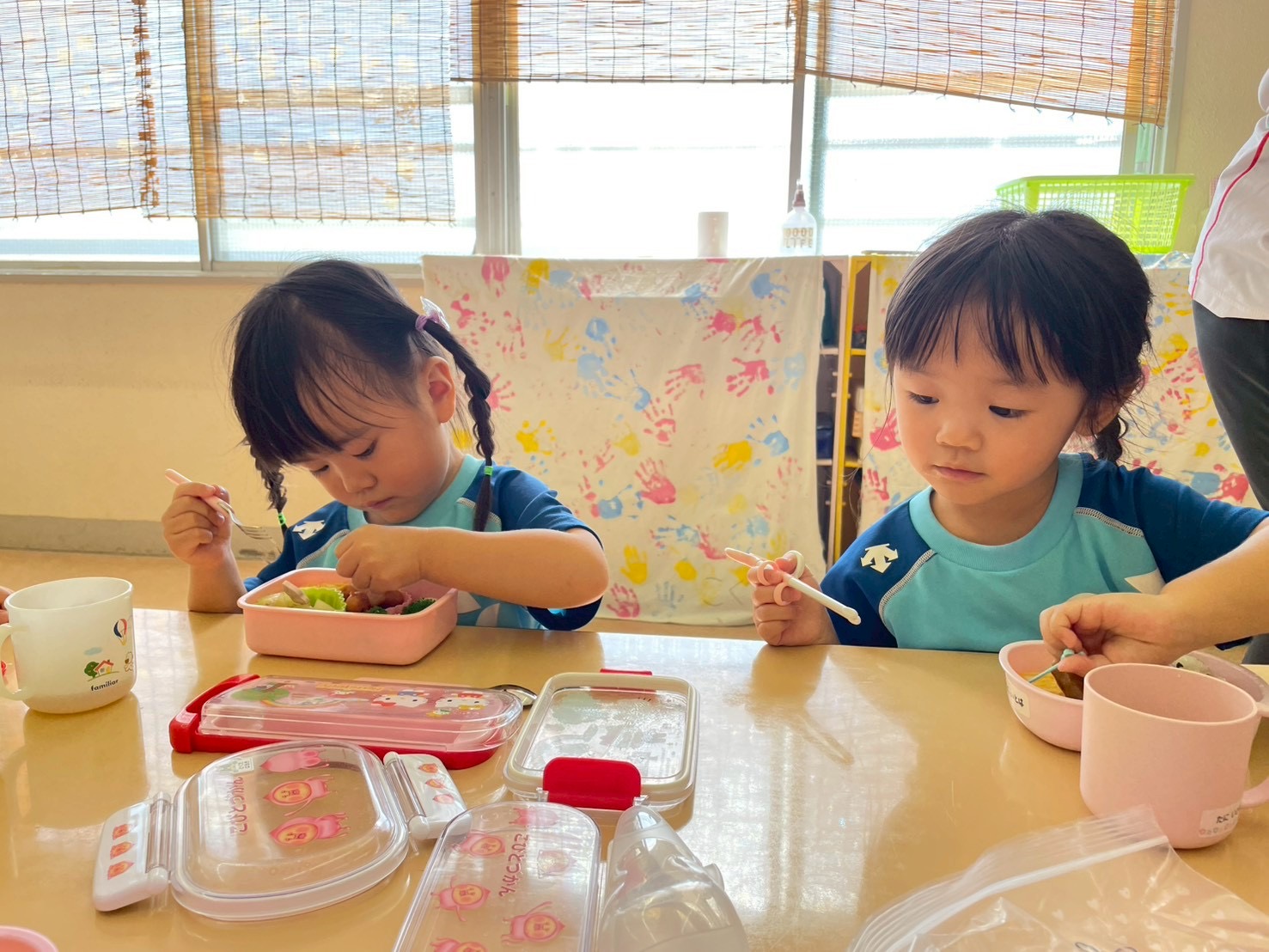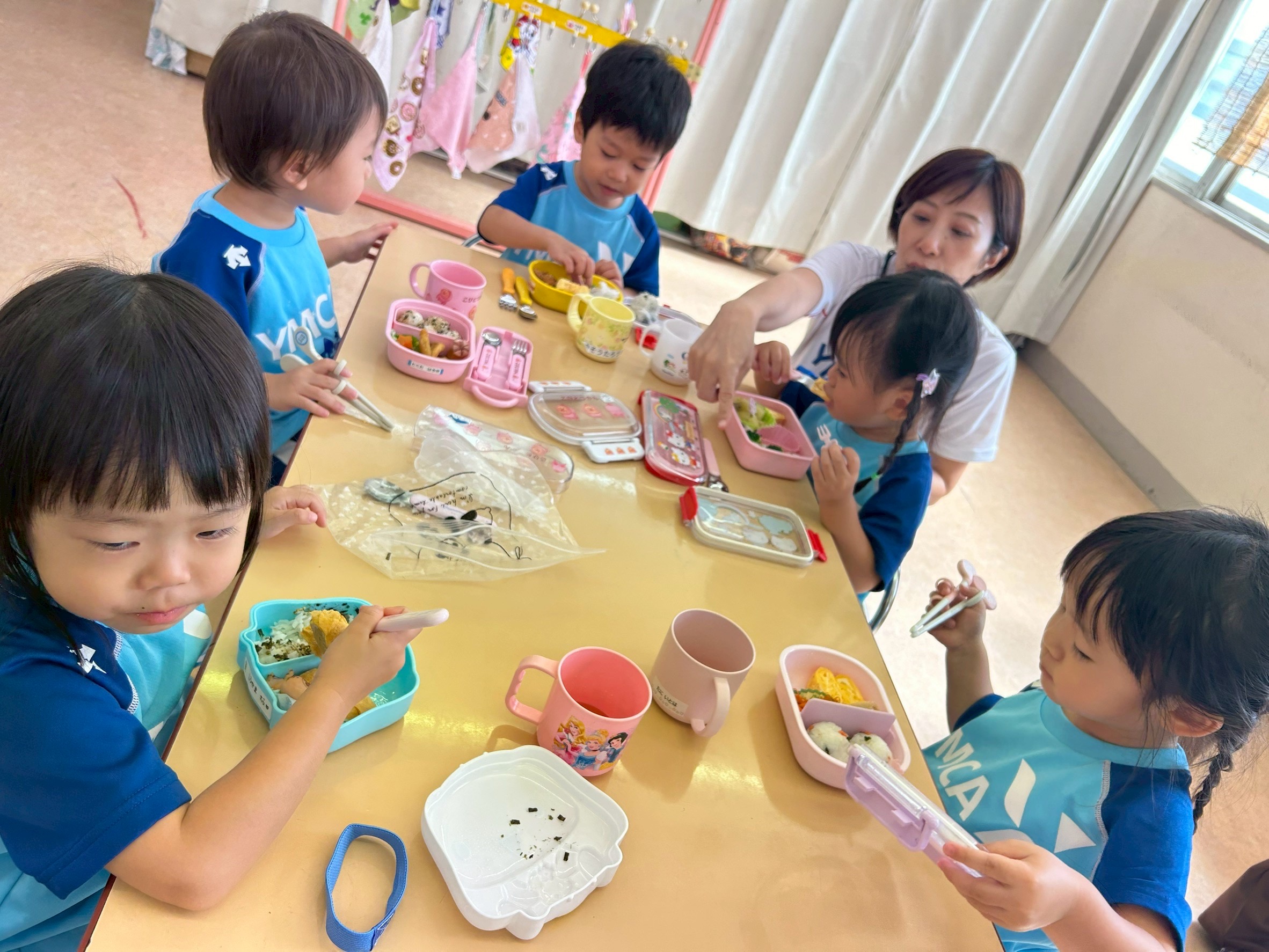 今日はお弁当日でした。みんな朝からワクワクが止まりません。お弁当箱や中身のお話をたくさんしてくれました。