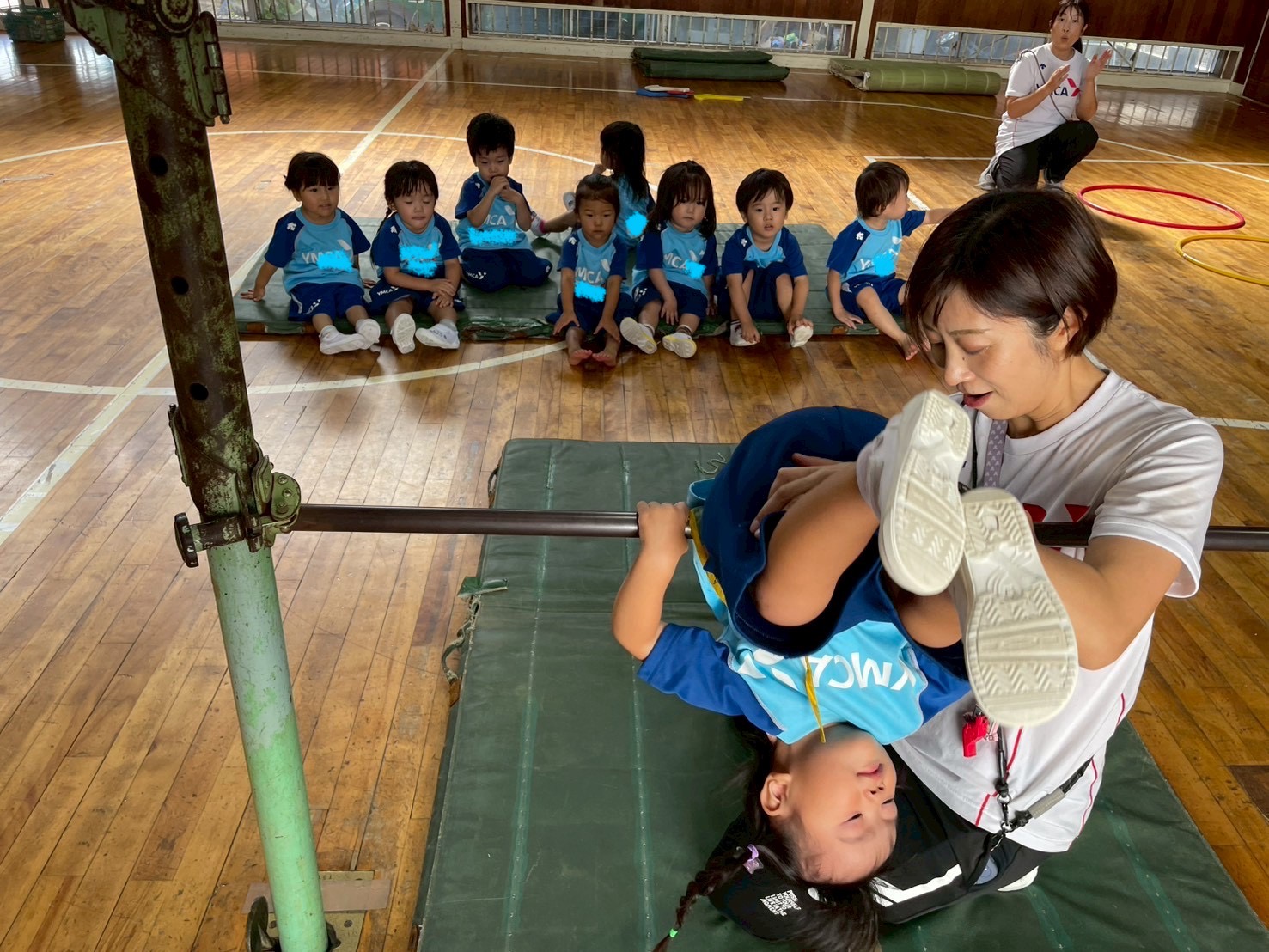 鉄棒は発表会をしました。何人かのお友だちが初めて前回り降りにチャレンジしました。お友達がしているのを見てやってみよう!と思う気持ちがすごいですね!