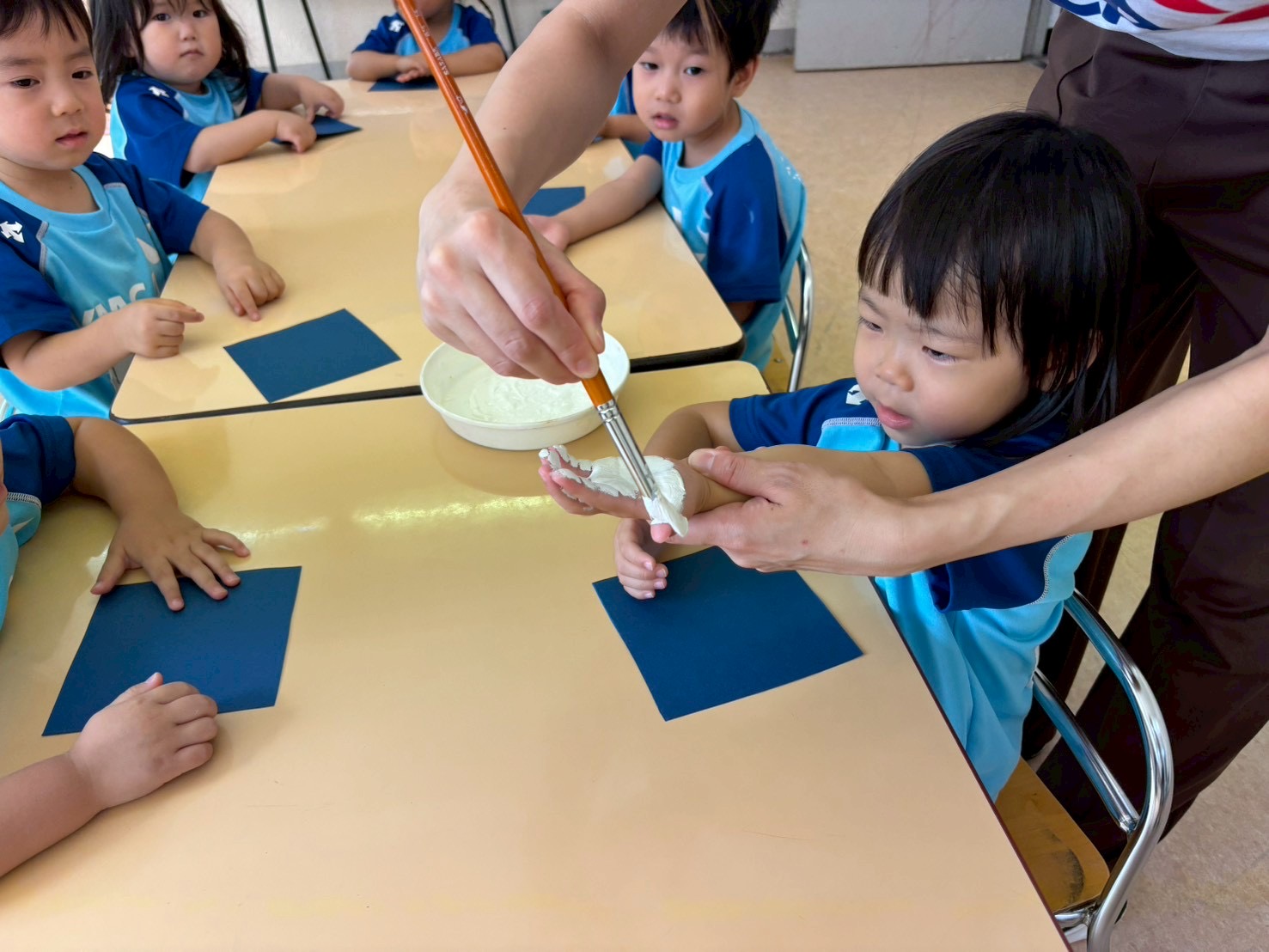 お部屋では手形でお化けを作りました。もうすぐハロウィン!お家に持って帰って飾れるようにしますので、お楽しみに~(^^)/