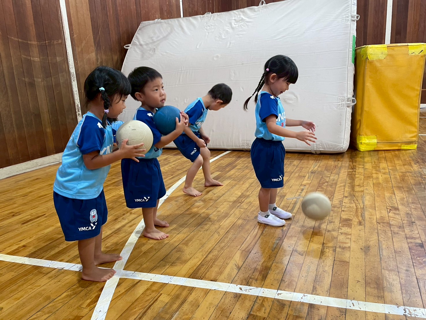 今日ははじめに、ボールをしました。