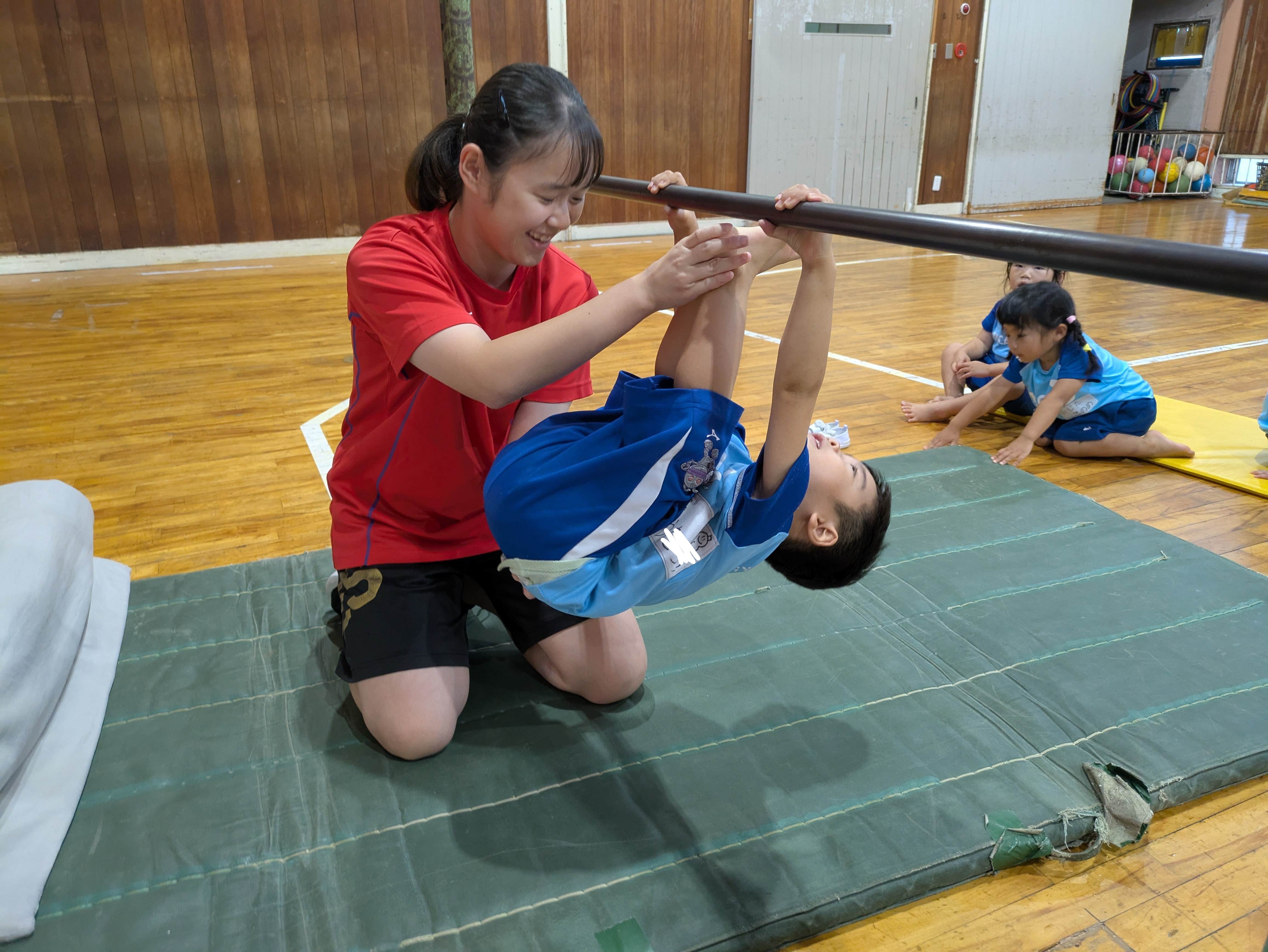 鉄棒では、逆上がりや前回りなど体を丸めてできるように頑張りましょう!